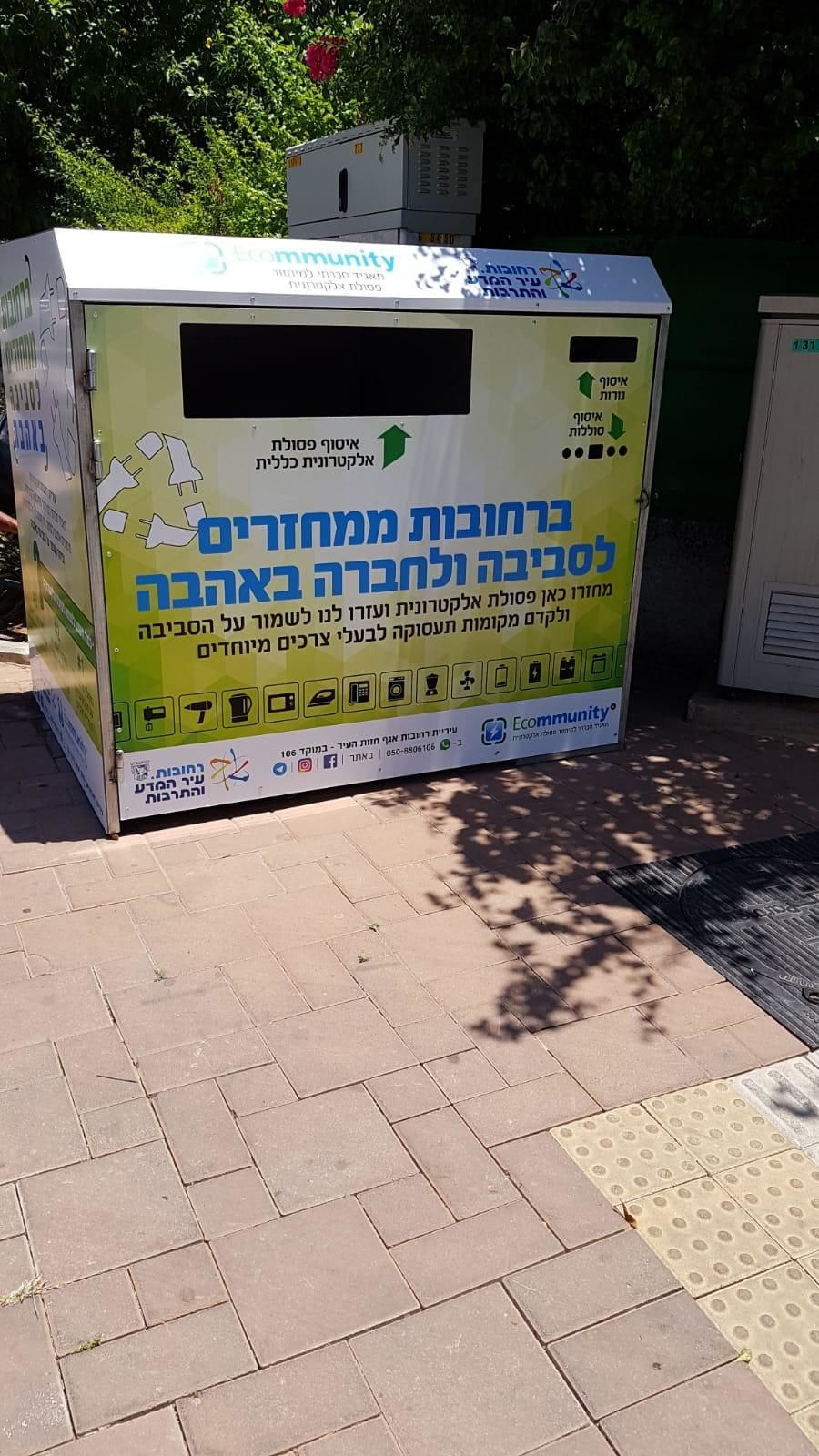 אגף חזות העיר בעיריית רחובות החל בשבוע שעבר את הצבתם של 21 מיכלי ענק ברחבי העיר, והפריסה תושלם במהלך השבועות הקרובים. התושבים מתבקשים להשליך לתוכם את הפסולת האלקטרונית, והיא תיאסף ותועבר לאחד מאתרי הטיפול המורשים ברחבי הארץ. באתרים אלה יפרקו את הפסולת האלקטרונית ויעבירו אותה להמשך תהליך מחזור. שיתוף הפעולה עם חברת אקומיוניטי משיג שתי מטרות סביבתיות וחברתיות חשובות: מחזור פסולת אלקטרונית וצמצום הפגיעה באיכות הסביבה, לצד תרומה לקהילה בהעסקת בעלי מוגבלויות וחיזוק מעמדתם הכלכלי-החברתי.