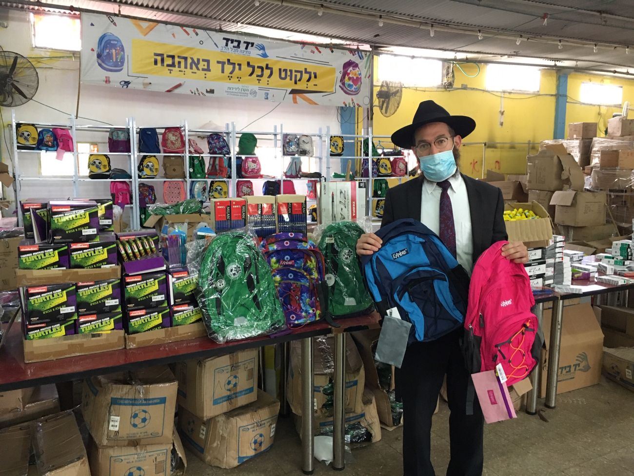 בית חב"ד בשכונות היובל-מקוב ערך חלוקת ילקוטים וציוד בית ספר למשפחות נזקקות ברחובות