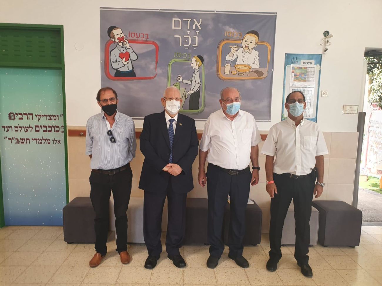 הנשיא התקבל בשירה על ידי התלמידים ופגש בכיתת הלימוד יחד עם ראש העיר וממלא מקומו והמנכל את ילדי כיתה ו׳ איתם ישב לשיעור על חודש אלול, ההכנות של כל אדם וחשבון הנפש האישי לקראת ראש השנה.