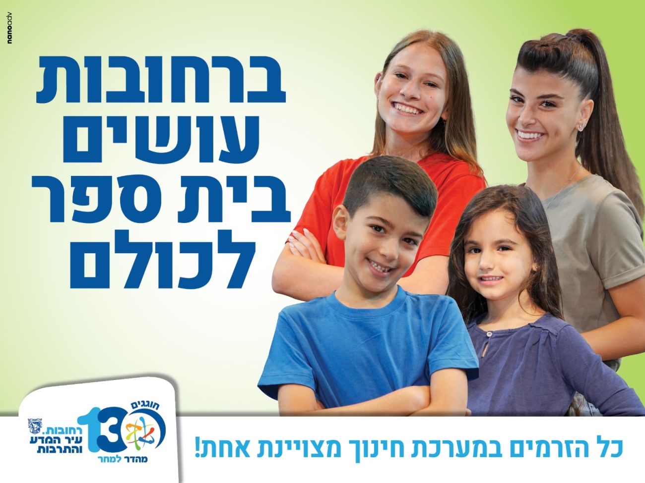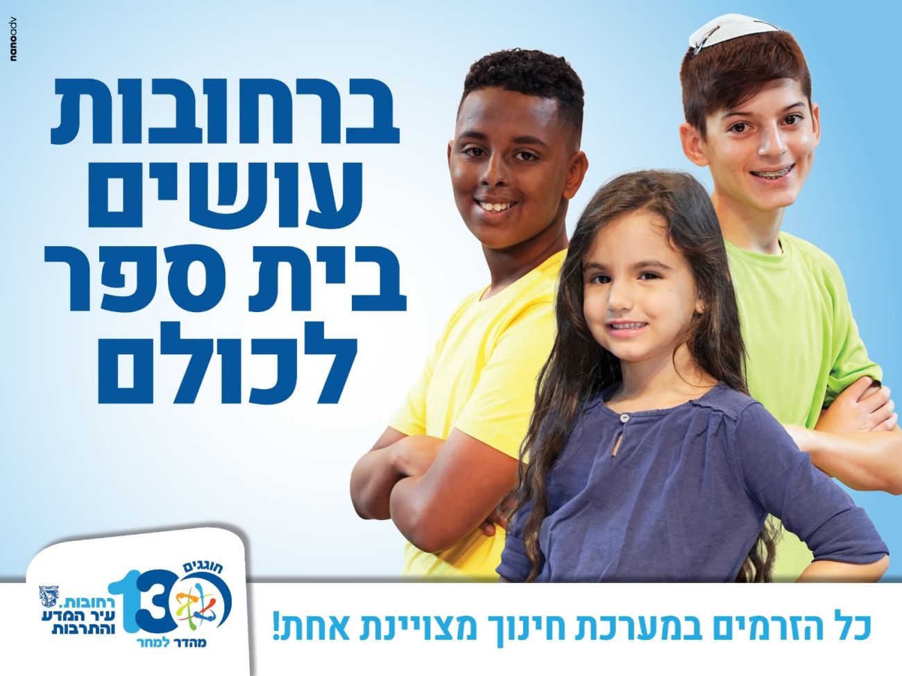 פתיחת שנת הלימודים כבר ממש מעבר לפינה ועיריית רחובות יוצאת בקמפיין מיוחד לקראת החזרה ללימודים. במסגרת הקמפיין צולמו תלמידים ותלמידות הלומדים במוסדות חינוך שונים בכל העיר מכל קצוות קשת החינוך העירונית, מהחינוך הממלכתי דרך החינוך הממלכתי-דתי ועד לחינוך החרדי. הילדים שהשתתפו בצילומים הינם בגילאים שונים והרצף נע בין גן חובה ועד כיתה י"ב. תמונות הקמפיין יפורסמו בשלטי חוצות בכל רחבי העיר, בעיתונים, באתרים המקומיים ובאגרת פתיחת השנה המגיעה לכל בתי האב בעיר.