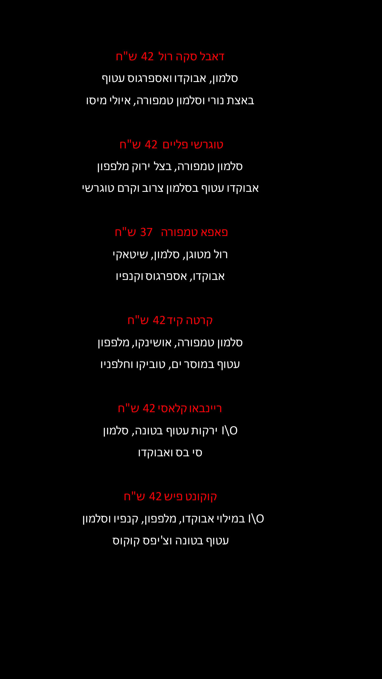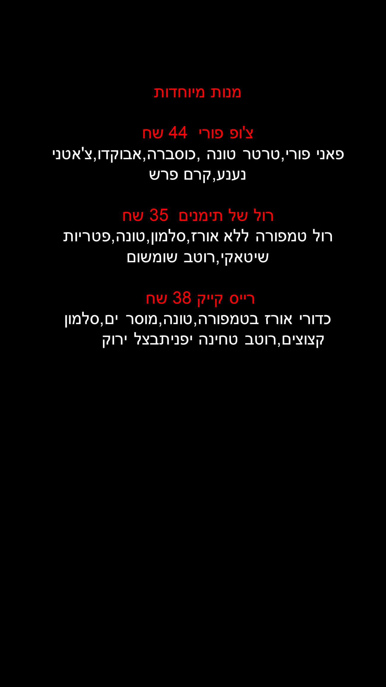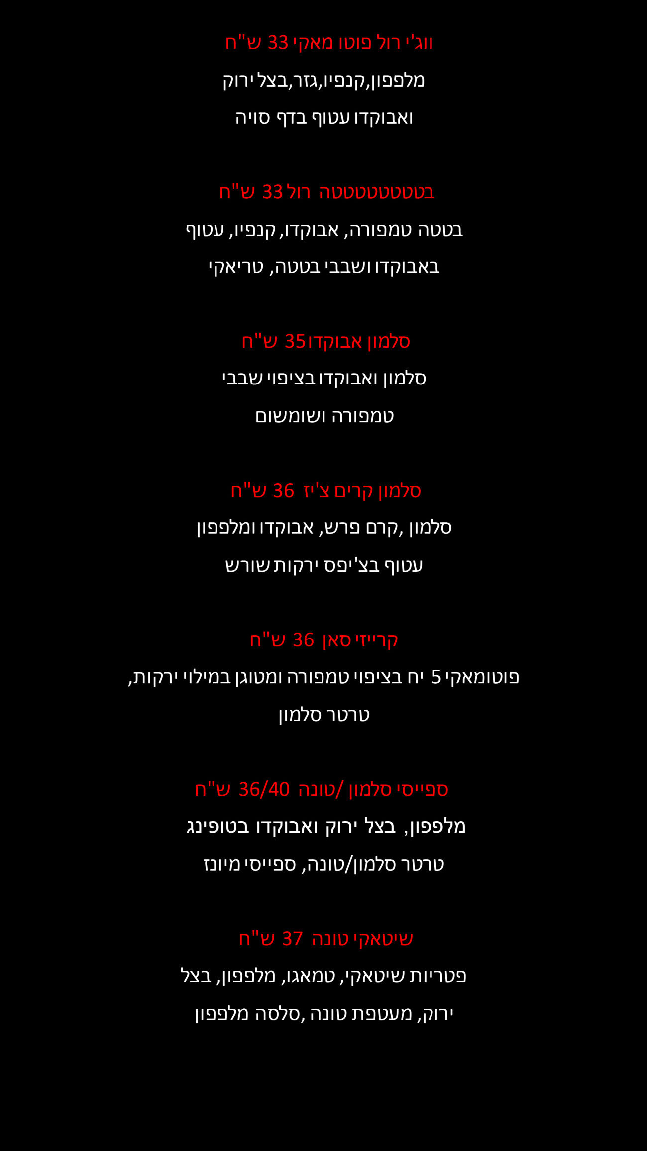 עלות המנות החל מ 33 ש"ח . ניתן גם להזמין קומבו זוגי – 3 רולים מהתפריט ב 110 ש"ח