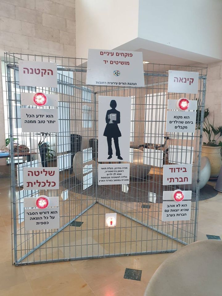 לרגל ציון יום המאבק באלימות נגד נשים הנהגת ההורים ברחובות הציבה בכניסה לבניין העירייה, מיצג מיוחד המדגיש חלק מנורות האזהרה האדומות אליהן חשוב לשים לב כדי לזהות אלימות כלפי נשים