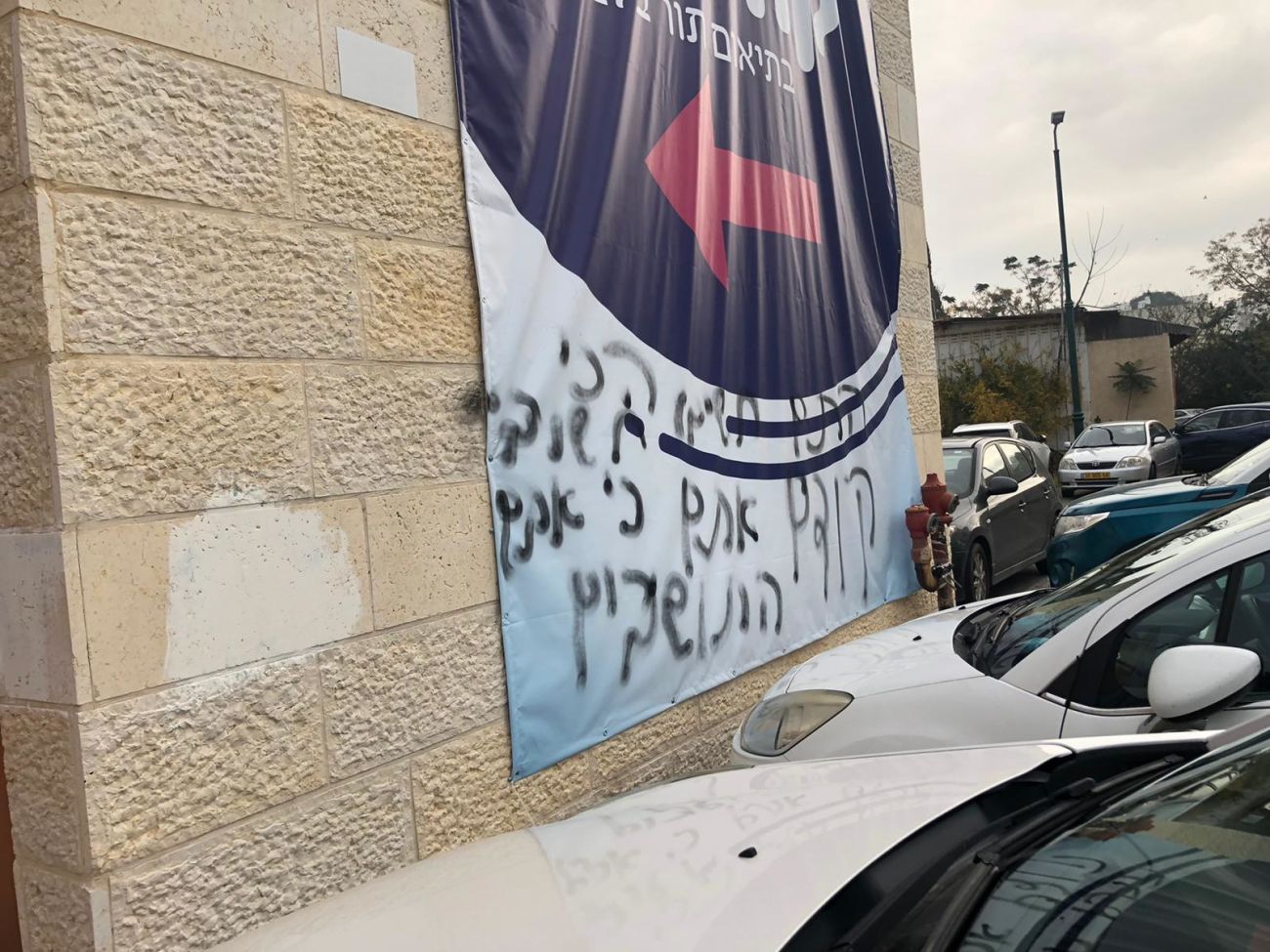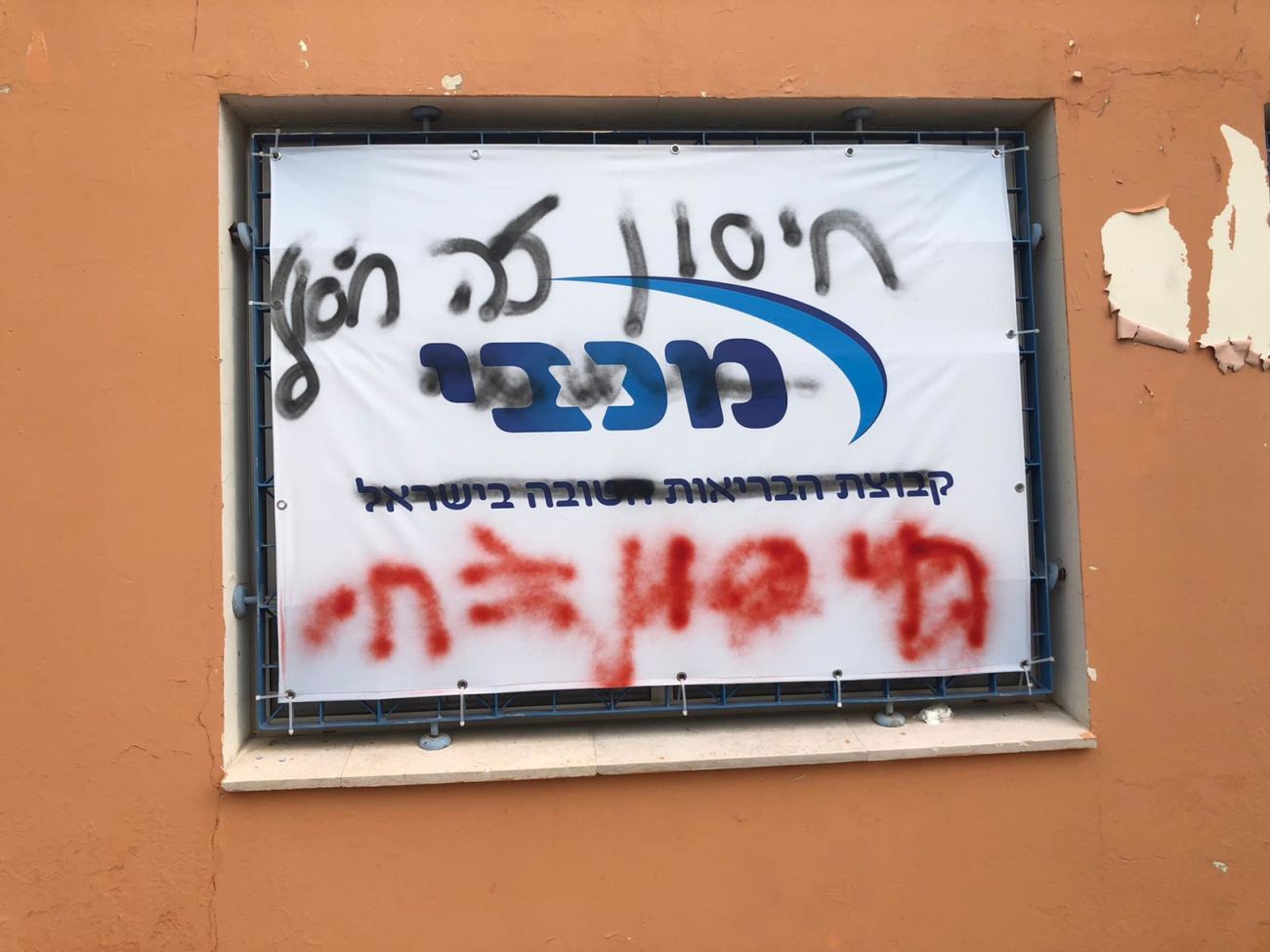 הבוקר הגיעו עובדי קופות החולים מכבי וכללית למתחם החיסונים העירוני ונתקלו בונדליזם שנעשה בשלטים במקום במהלך הלילה. השלטים הושחתו