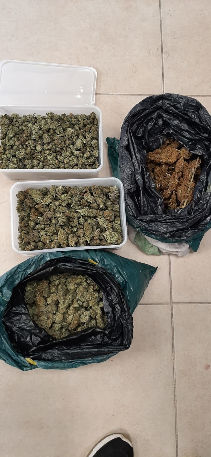 החשוד, בן 40, נעצר במקום ובחיפוש שנערך בדירתו ובמקומות מסתור נוספים בסיוע כלב לאיתור סמים, נתפס סם מסוג מריחואנה במשקל כולל של 2.4 קג' וכן סכום כסף גדול במזומן.