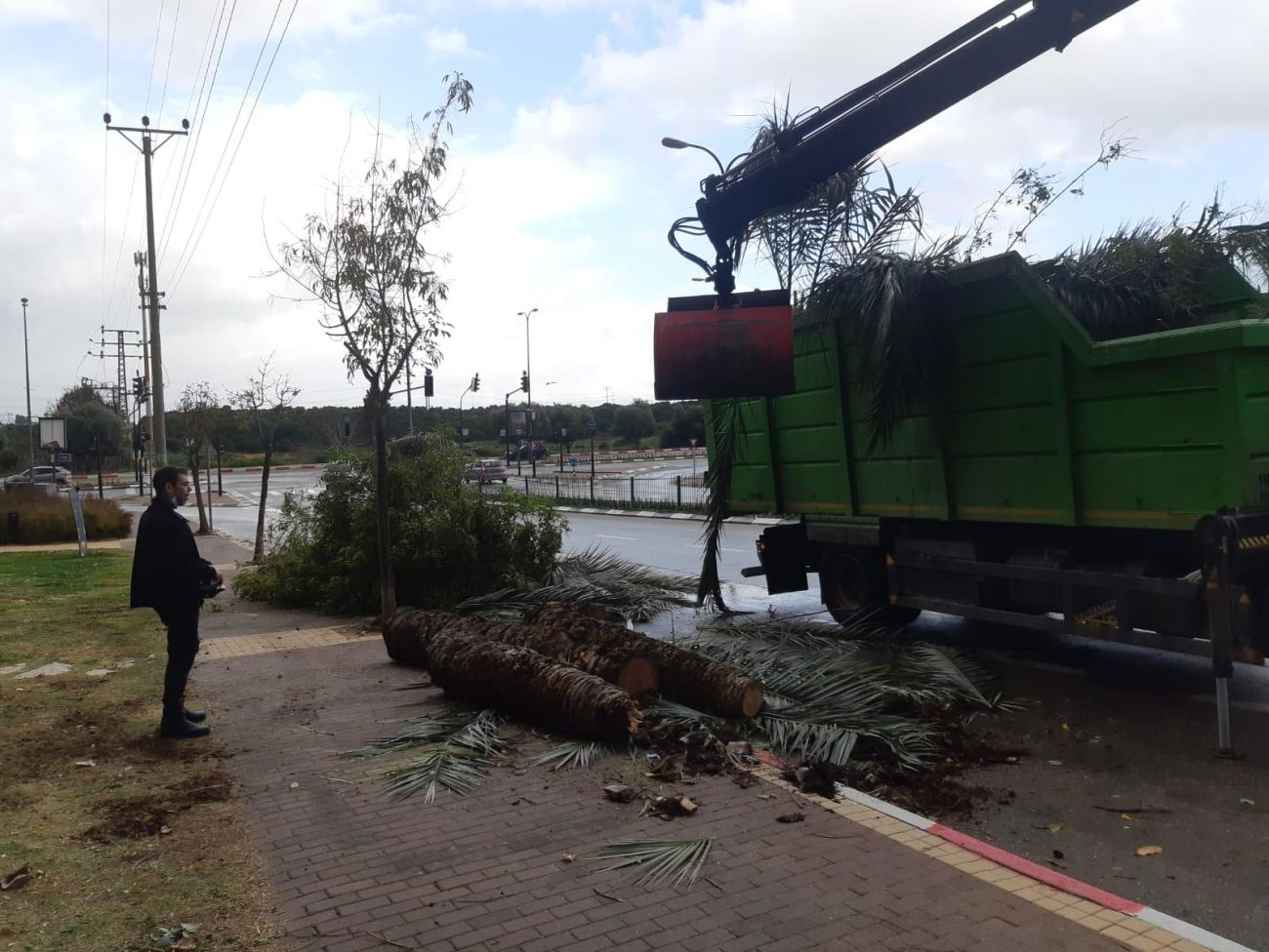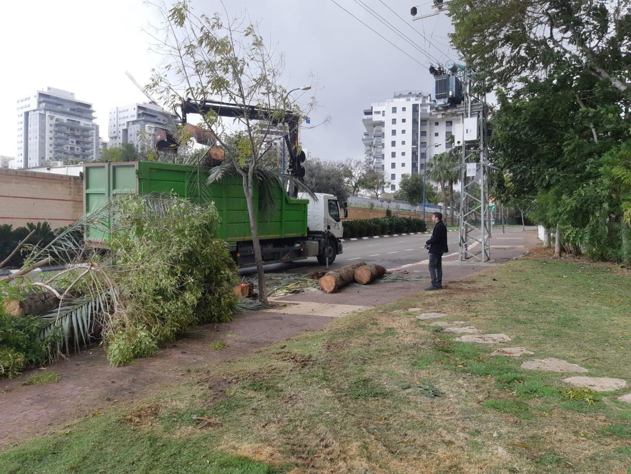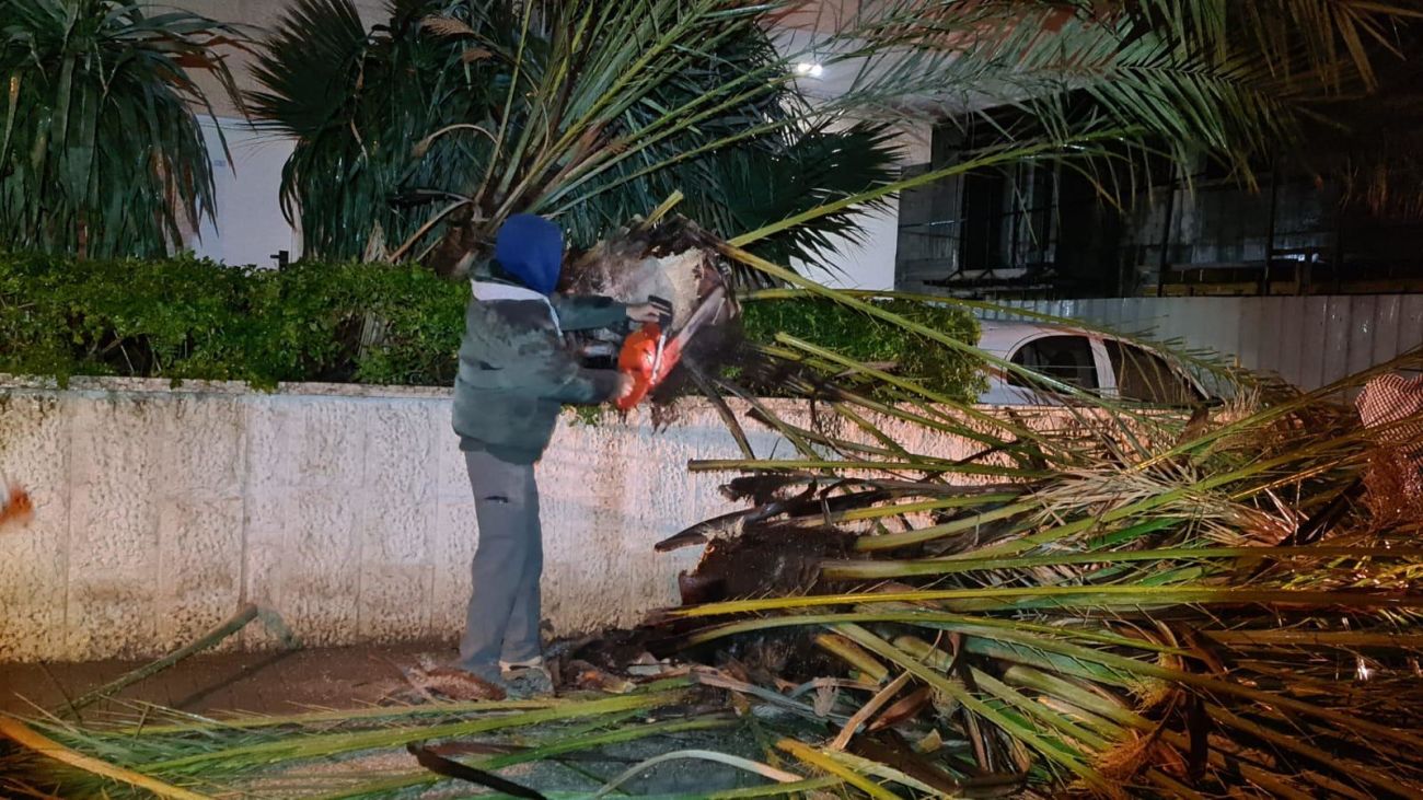 כך למשל, אמש קרס עץ דקל שלם על רכב - עובדי אגף גנים ונוף הגיעו לגזום את הענפים על מנת להרחיק את העץ.