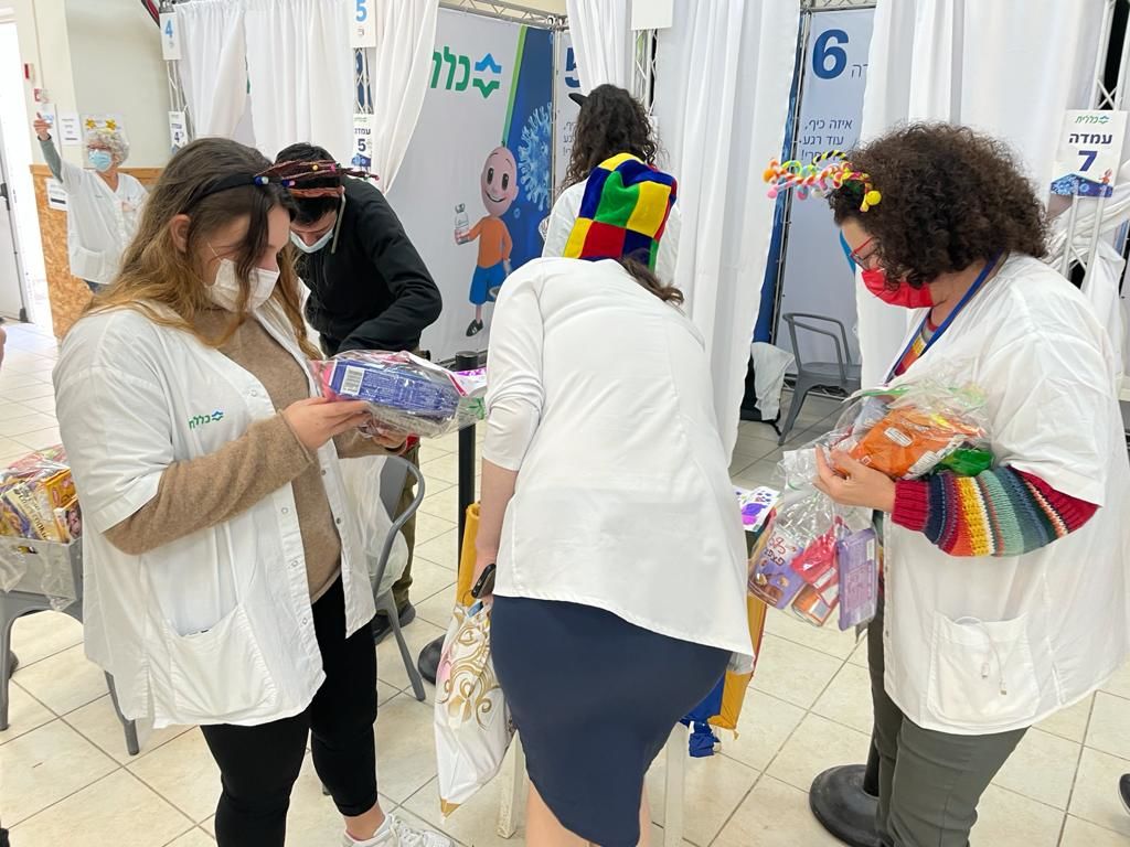 תלמידי בראשית ברחובות יצאו להצדיע ולחלק משלוחי מנות לצוותים הרפואיים במתחמי החיסון של כללית ומכבי ברחובות