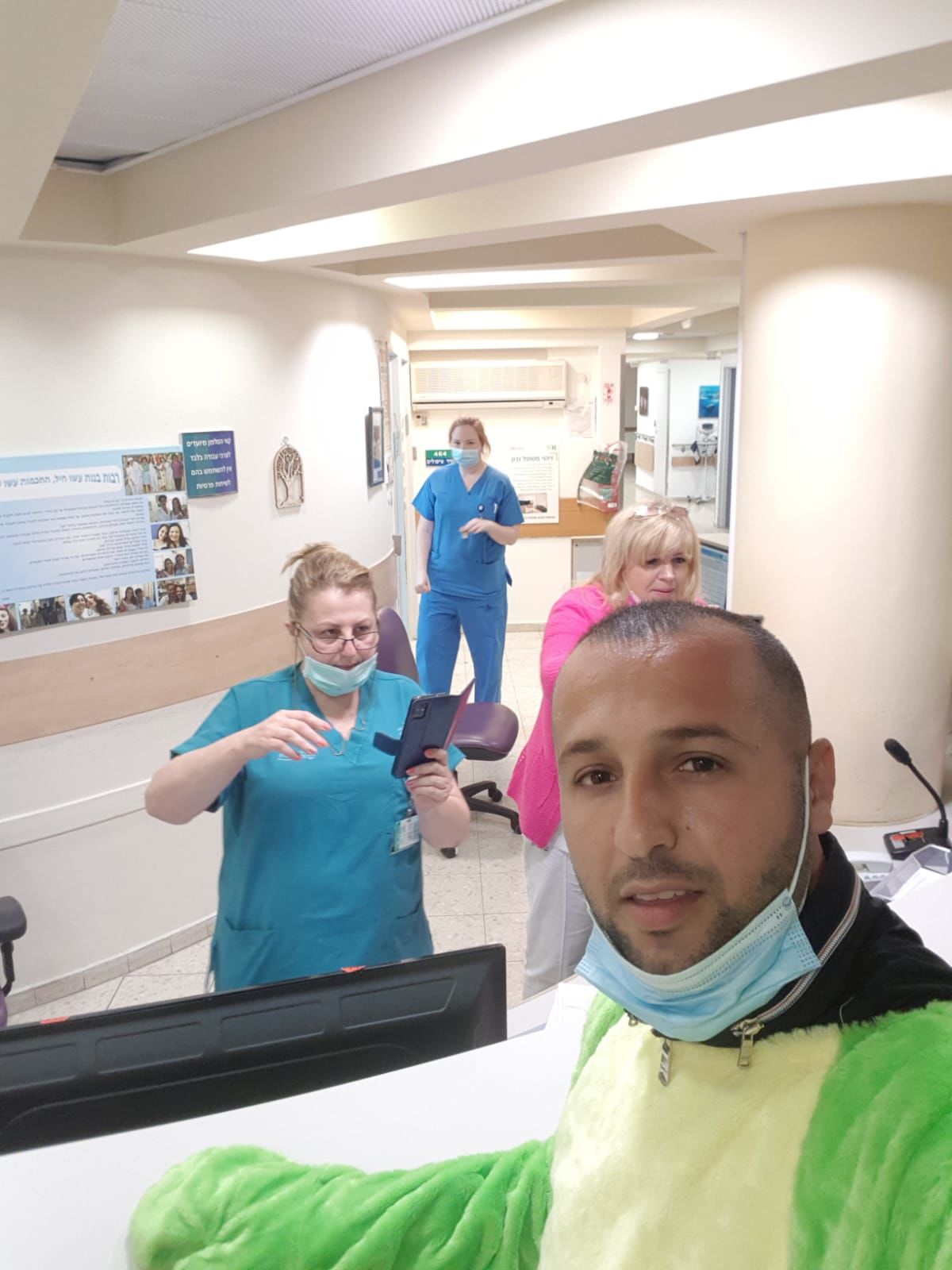 רמי מדהלה חן קריטי וגדי עוקשי ארגנו תרומה מאייל גולן ומאורון מפיצה אזורים וחלקו מעל 100 מגשי פיצה ו - 150 משלוחי מנות בבית החולים קפלן