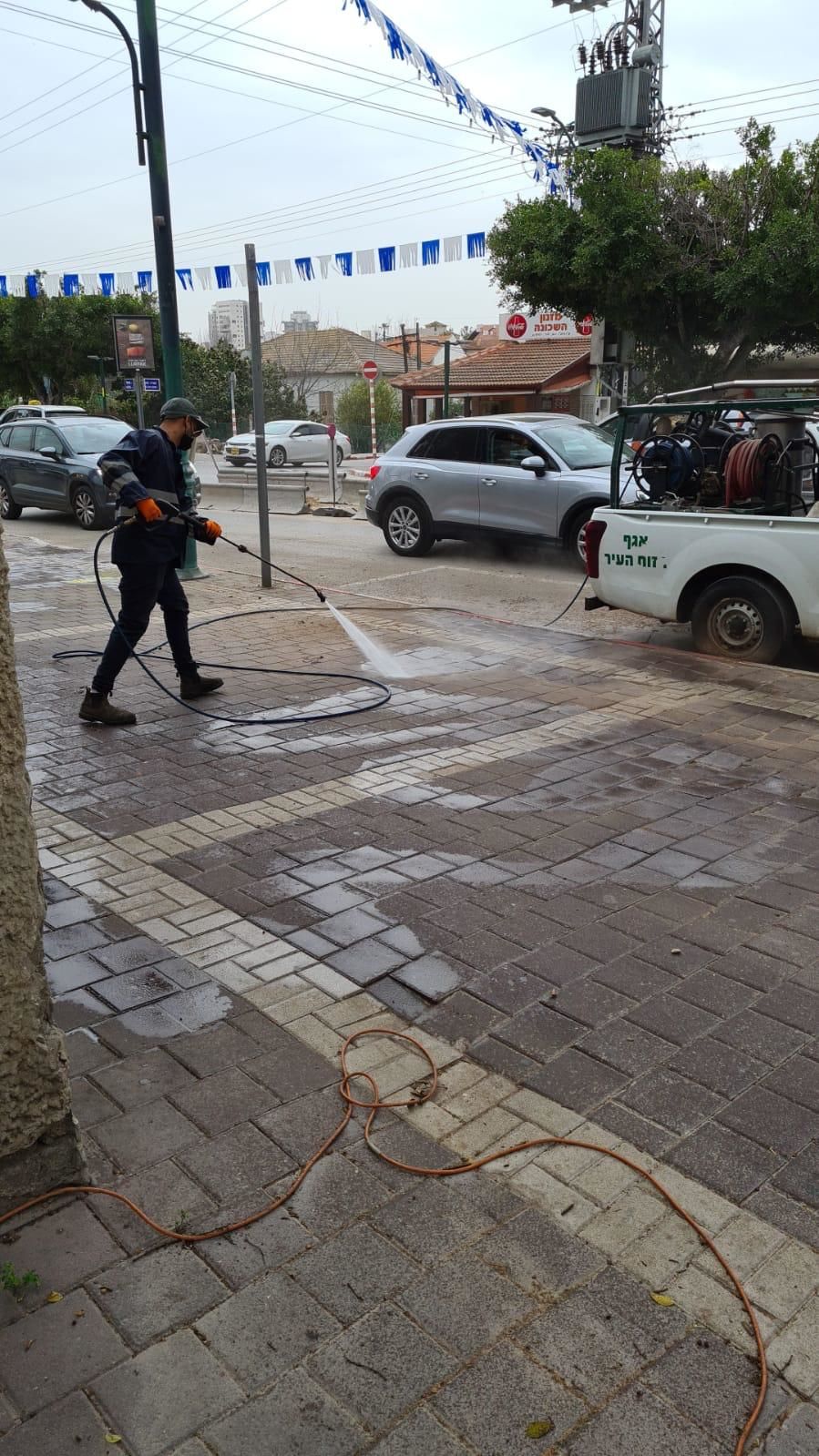 צוותי אגף הגנים מבצעים שטיפות של הגנים הציבוריים וכן ניקיון יסודי בכל הערוגות הציבוריות לסילוק פסולת שנאספה בינות לצמחים.