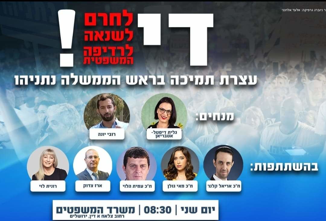 ביום שני 5/4 ייפתח בשעה 08:30 משפטו של ראש הממשלה בנימין נתניהו בבית המשפט המחוזי בירושלים. באותו היום מתוכננות 2 הפגנות גדולות. הראשונה הפגנה של ארגוני השמאל ליד בית הנשיא נגד מתן המנדט לראש הממשלה לנסות להרכיב ממשלה את ההפגנה הזאת מובילה התנועה לאיכות השלטון. ובמקביל בשעה 08:30 תומכי הליכוד מארגנים עצרת הזדהות ותמיכה בראש הממשלה בנימין נתניהו אשר יתייצב בבית המשפט לתחילת משפטו.