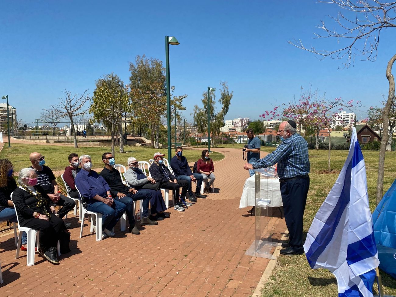 האירוע התקיים בנוכחות ניצולי שואה בני העיר, במעמד ראש העיר, רחמים מלול, סגנו מחזיק תיק חזות העיר, עו"ד יניב מרקוביץ', מנכ"ל עיריית רחובות, דורון מילברג, מנהלת אגף גנים ונוף אפרת דסקלו ואבישי שרעבי וכן במעמד נציגי העמותה לעזרה מיידית לניצולי שואה – וניצולי שואה תושבי העיר.