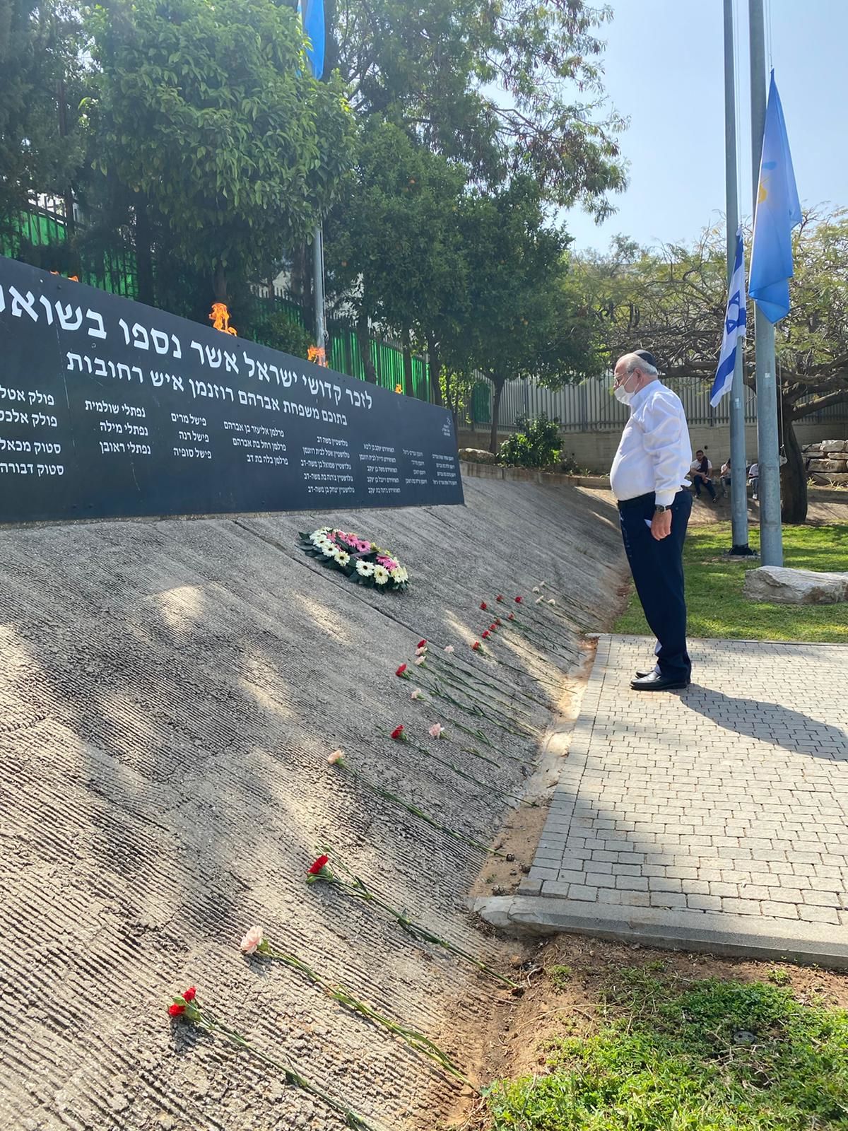 פתח את דבריו ואמר כי ״כולנו צריכים להתנצל היום בפני הנספים ובפני השורדים על שלפני שנה האנדרטה הזו הייתה בודדת והרחבה ריקה. נכון שזה היה בגלל הקורונה, אבל בכל זאת- קשה לראות את המקום הזה ריק, את השמות החקוקים כאן לבד.
