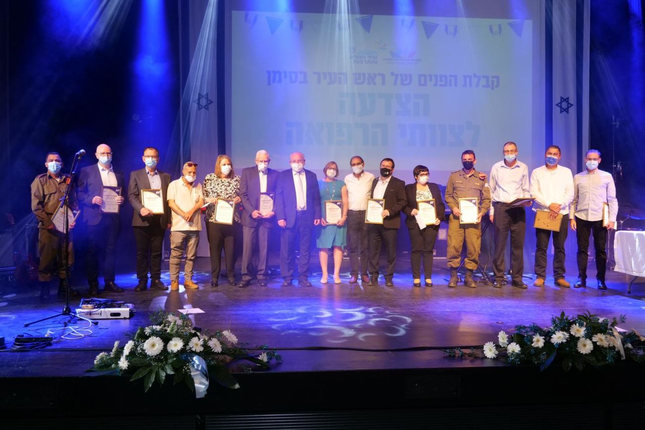 תעודות ההוקרה הוענקו בסימן הצדעה לצוותי הרפואה בעיר על עבודתם במהלך השנה החולפת במאבק במגיפת הקורונה.