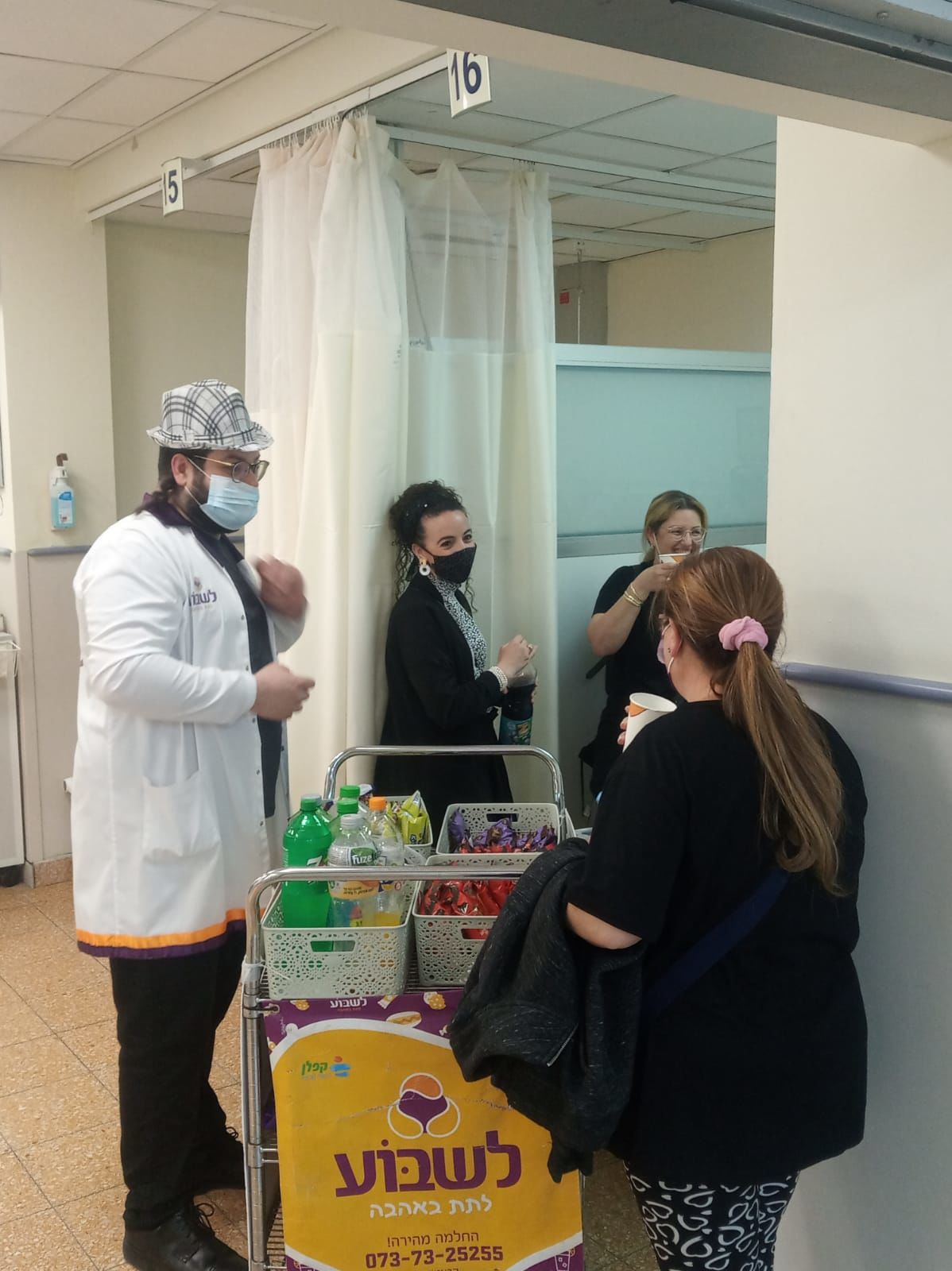 ח"כ עידית סילמן מרחובות הצטרפה לפעילות מתנדבי ארגון "לשבוע" של חסידות קרעטשניף, בביה"ח קפלן שם חלקה למאושפזים כריכים ושתייה