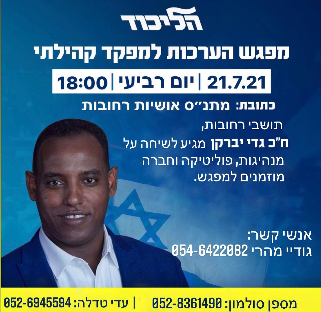 ביום רביעי 21.7 יערוך ח"כ גדי יברקן מפגש עם תושבי רחובות במתנ"ס אושיות
