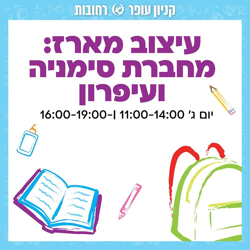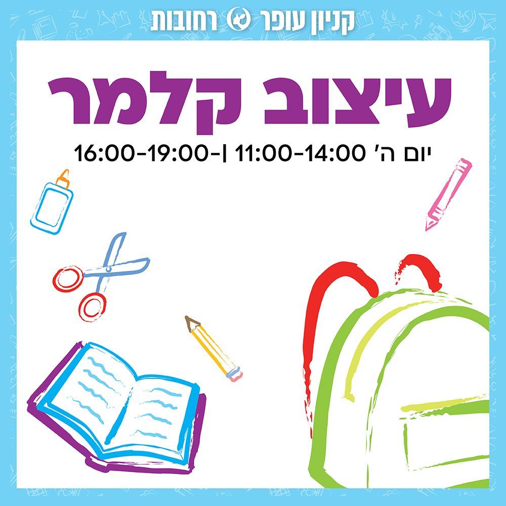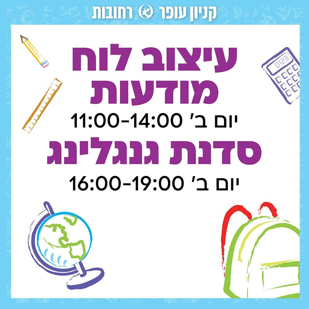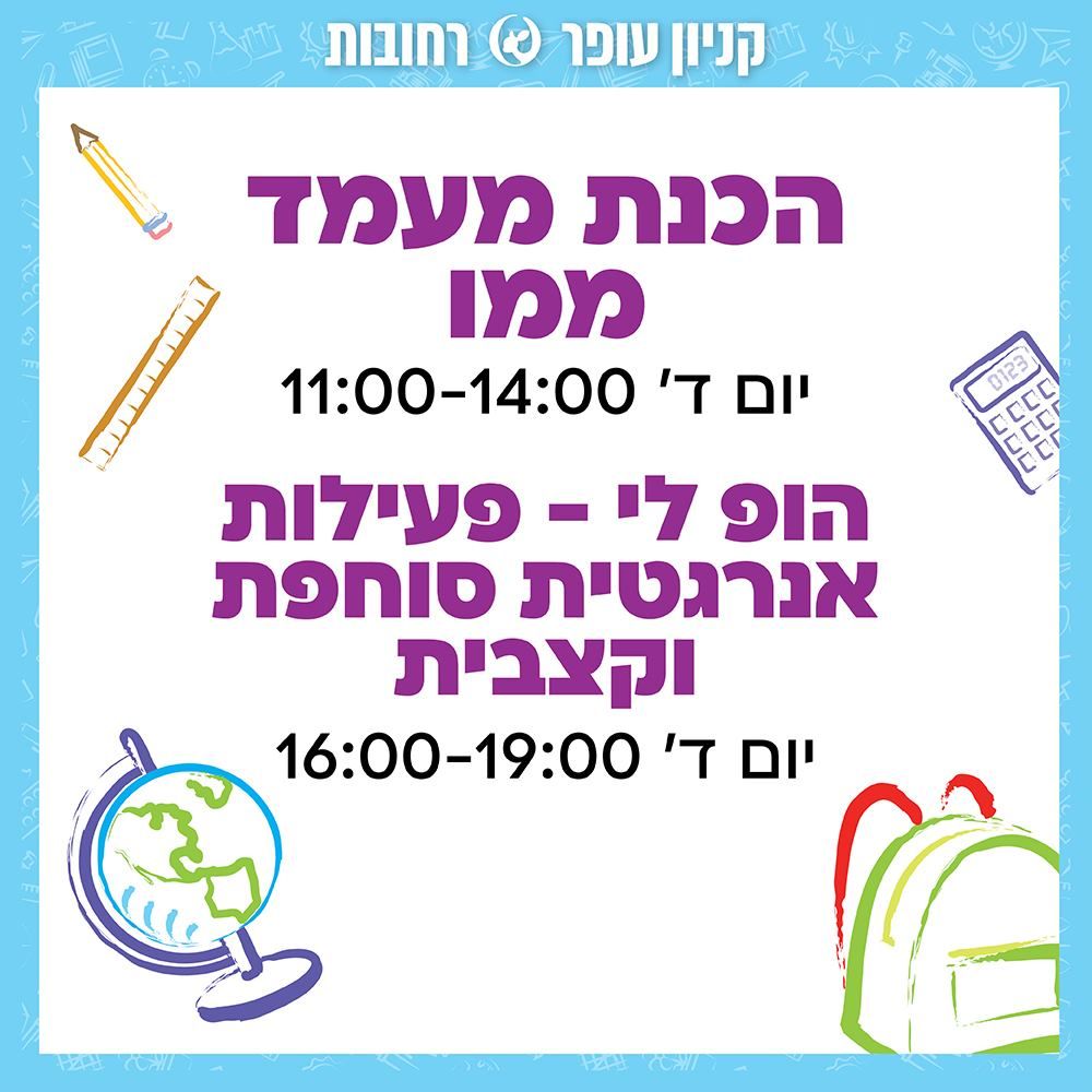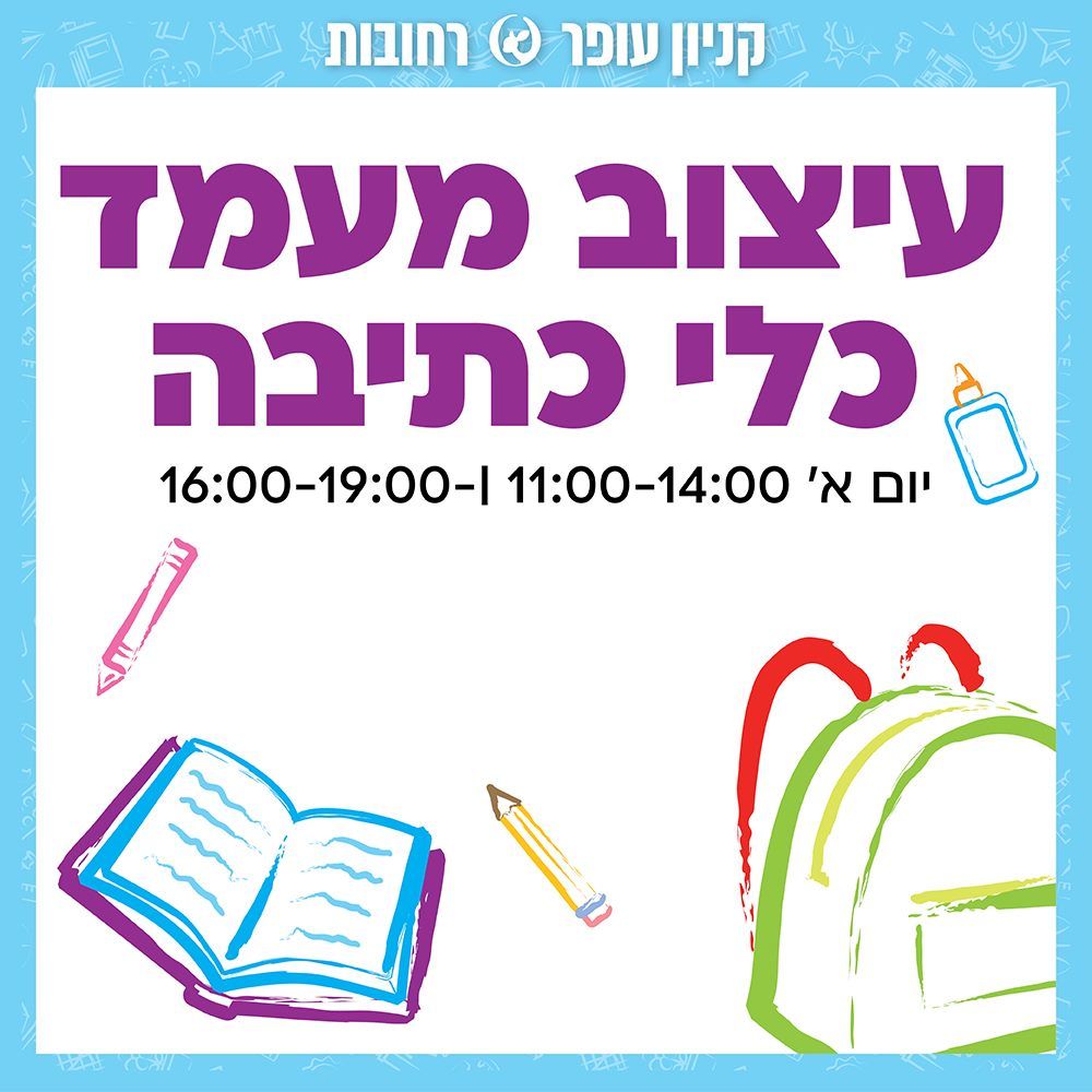 במהלך השבוע הקרוב 22-26.8 יקיים קניון רחובות מגוון סדנאות לילדים לקראת פתיחת שנת הלימודים: הכנת קלמר, מעמד כלי כתיבה, עיצוב קלמר ועוד