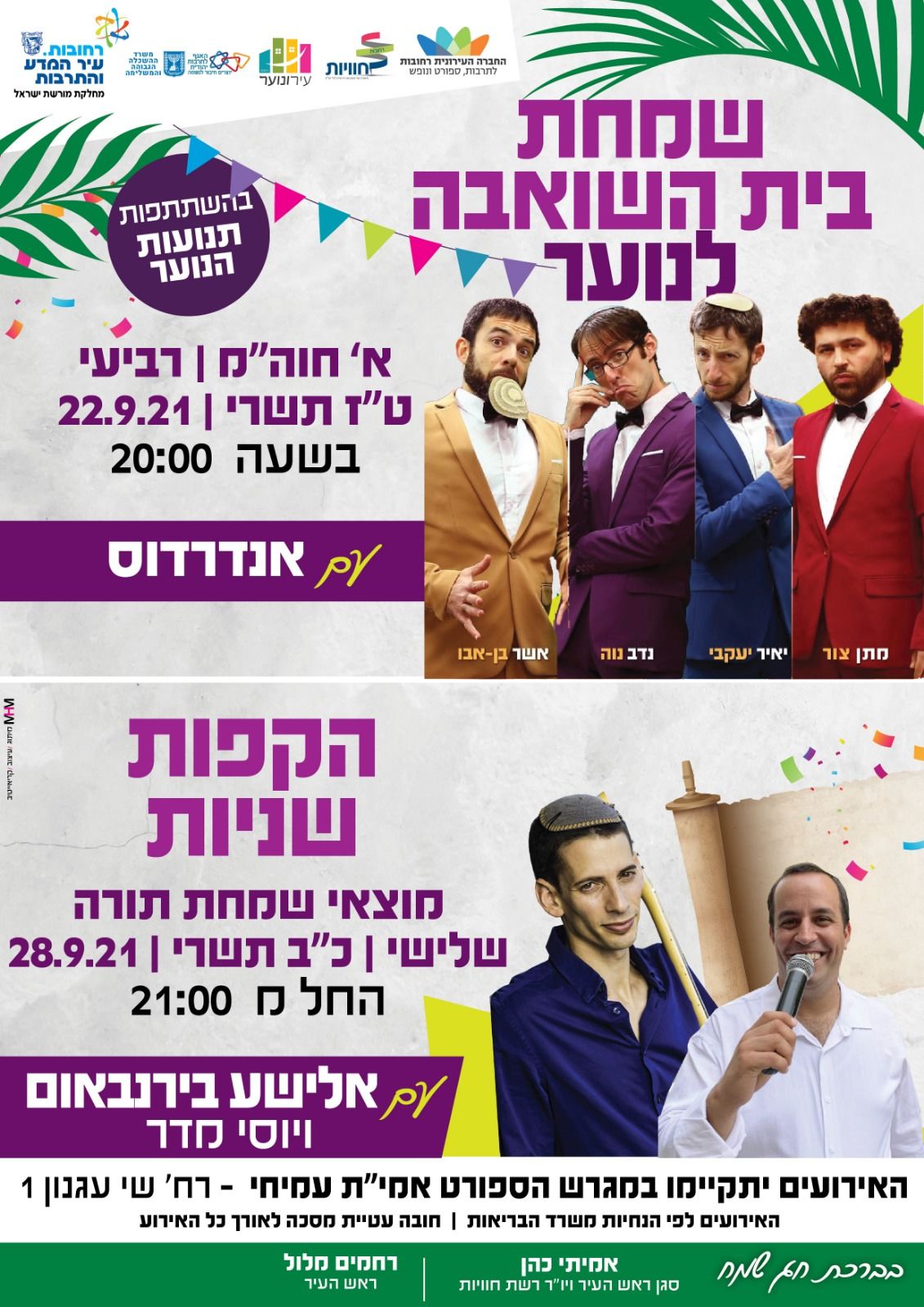 • א' חוה"מ | רביעי | ט"ז תשרי | 22.9 | 20:00 | רחבת בי"כ עזרא הסופר – מנוחה ונחלה 3