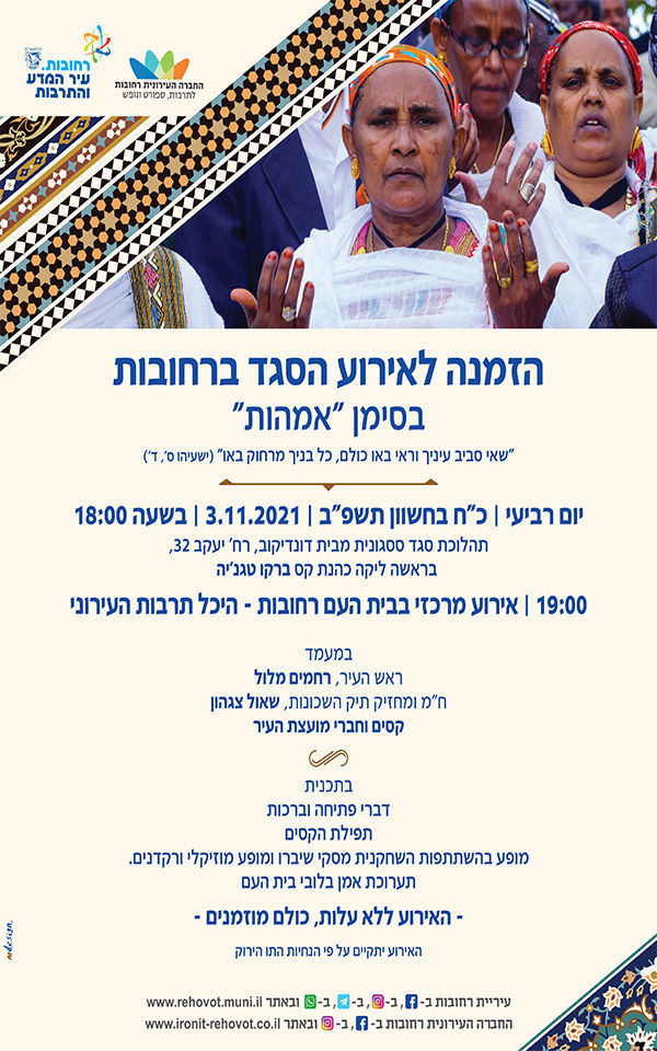 ביום רביעי 3.11 תציין רחובות את חג הסיגד בתהלוכה חגיגית ומופעים של צעירי רחובות, מסקי שיברו, הזמר וורקייה צ'לצ'או בליווי נגנים ורקדנים בני העדה האתיופית ועוד