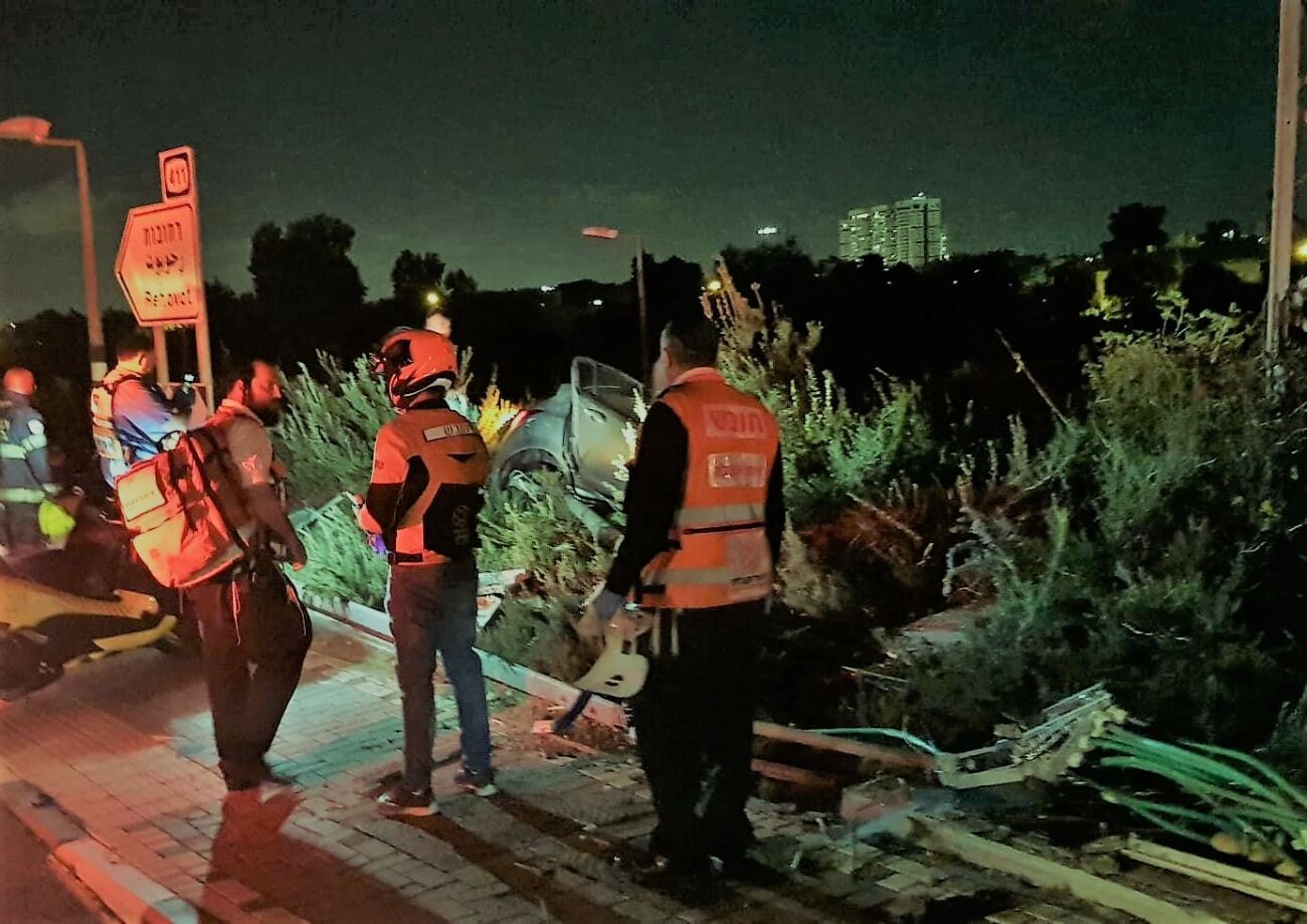 רכב "עף" לתעלה בכניסה לרחובות, 2 פצועים