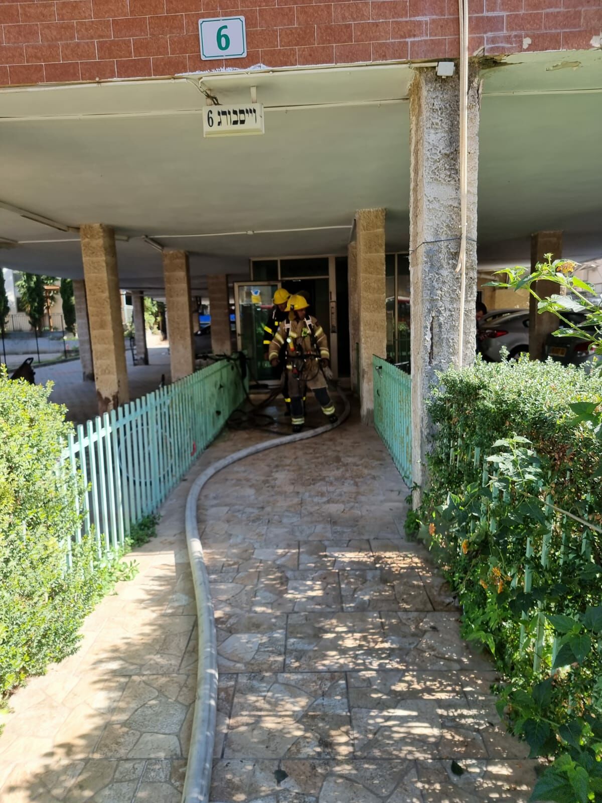 3 צוותי כיבוי וחילוץ שהגיעו למקום הבחינו בעשן בתוך חדר המדרגות כתוצאה משריפה שהתחילה במקלט.