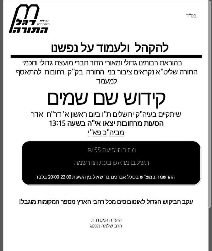 "אם כל ההפגנות של הציבור החרדי" : כ – 40 אוטובוסים ייצאו ביום ראשון מרחובות לירושלים להפגנה הגדולה של הציבור החרדי במחאה על החוק לשוויון בנטל