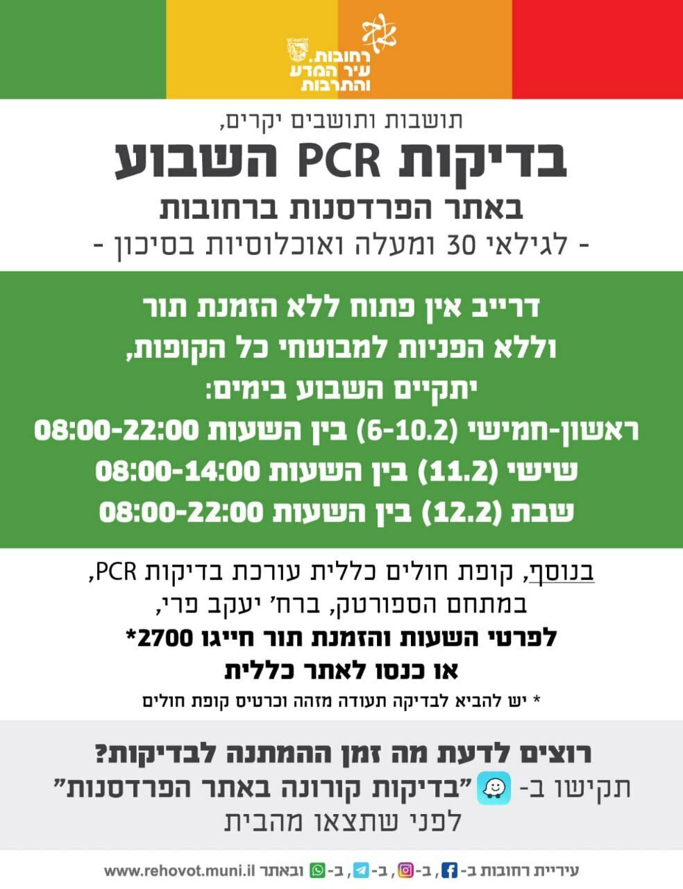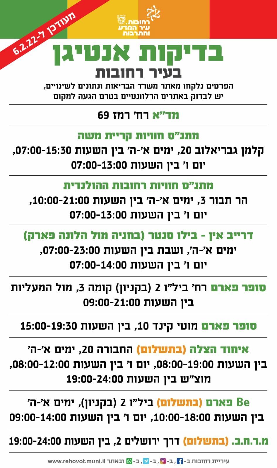 עדכון בדיקות הקורונה ברחובות לשבוע 6.2-12.2.22