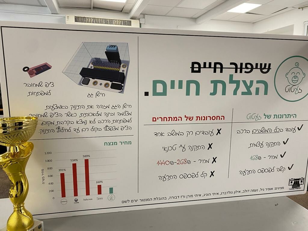 במקום הראשון זכתה חטיבה א' מבית הספר דה שליט על המיזם שפיתחו- זעטוט - מיזם שנועד להצלת חיי תינוקות הנשכחים ברכב. מדובר בחיישן המותקן על תקרת הרכב ומזהה את התינוק באמצעות מצלמה ובינה מלאכותית, כאשר הצ׳יפ שמחובר למפתחות הרכב לא נמצא בקרבת מקום, הצ׳יפ מצפצף בקול רם עד לחילוץ התינוק.