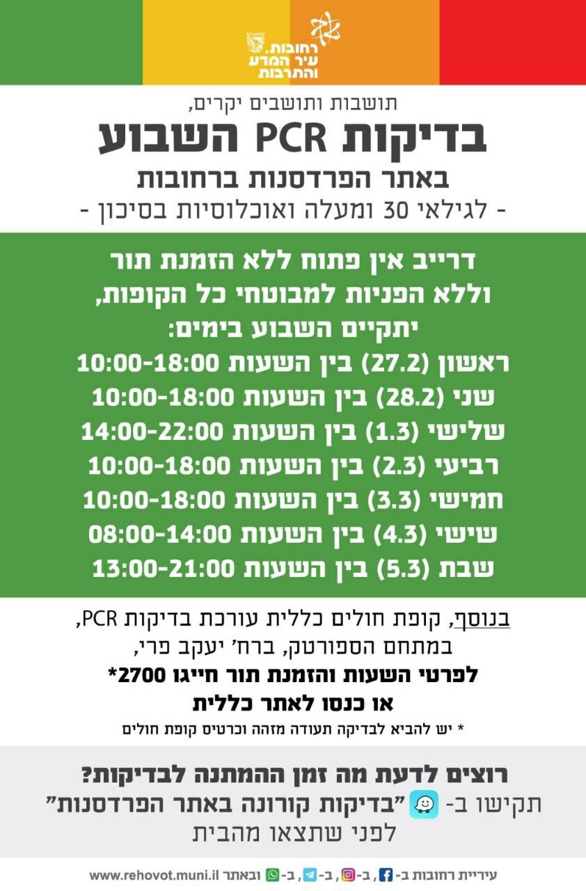 שעות פעילות מתחם בדיקות הקורונה באתר הפרדסנות - שימו לב לשינויים