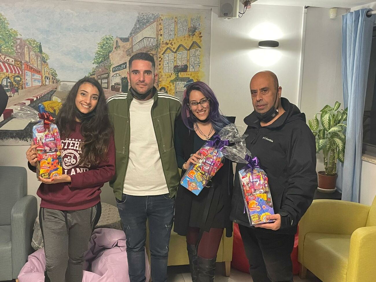 כמיטב המסורת מועדון מכבי שעריים בראשות מני סויסה נציגי ההנהלה ושחקני הקבוצה שיצאו הפעם לאקי"ם לחלוקת משלוחי מנות והפתעות נוספות.