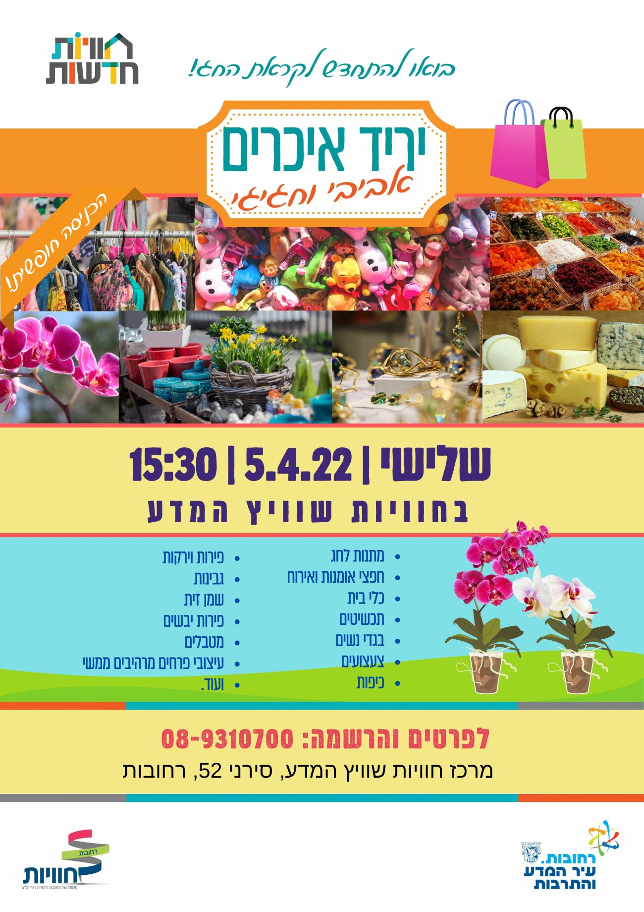 רגע לפני חג הפסח, מרכז חוויות שוויץ המדע מזמין את תושבי רחובות להגיע ליריד האיכרים המסורתי ולהתחדש עם מוצרים ומתנות חדשות.