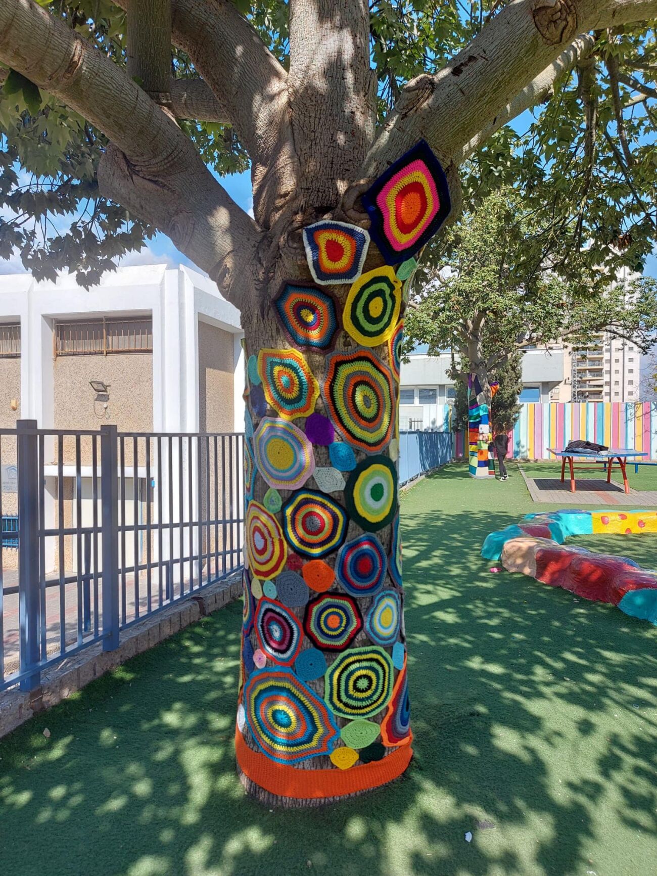 בית הספר ויצמן חגג בימים אלו את סיום פרוייקט הלבשת העצים שהחל לפני שנתיים ביוזמת המתנדבת רותי גוהר יחד עם מיכל לשם המורה לאמנות. במיזם לקחו חלק אמהות, סבות, מתנדבים מהקהילה, אנשי צוות ותלמידים. במסגרת הפעילות כל מתנדבת סרגה חלק ולאחר מכן חוברו כל הסריגים למלבושים לעצים ע"י רותי וחברות.