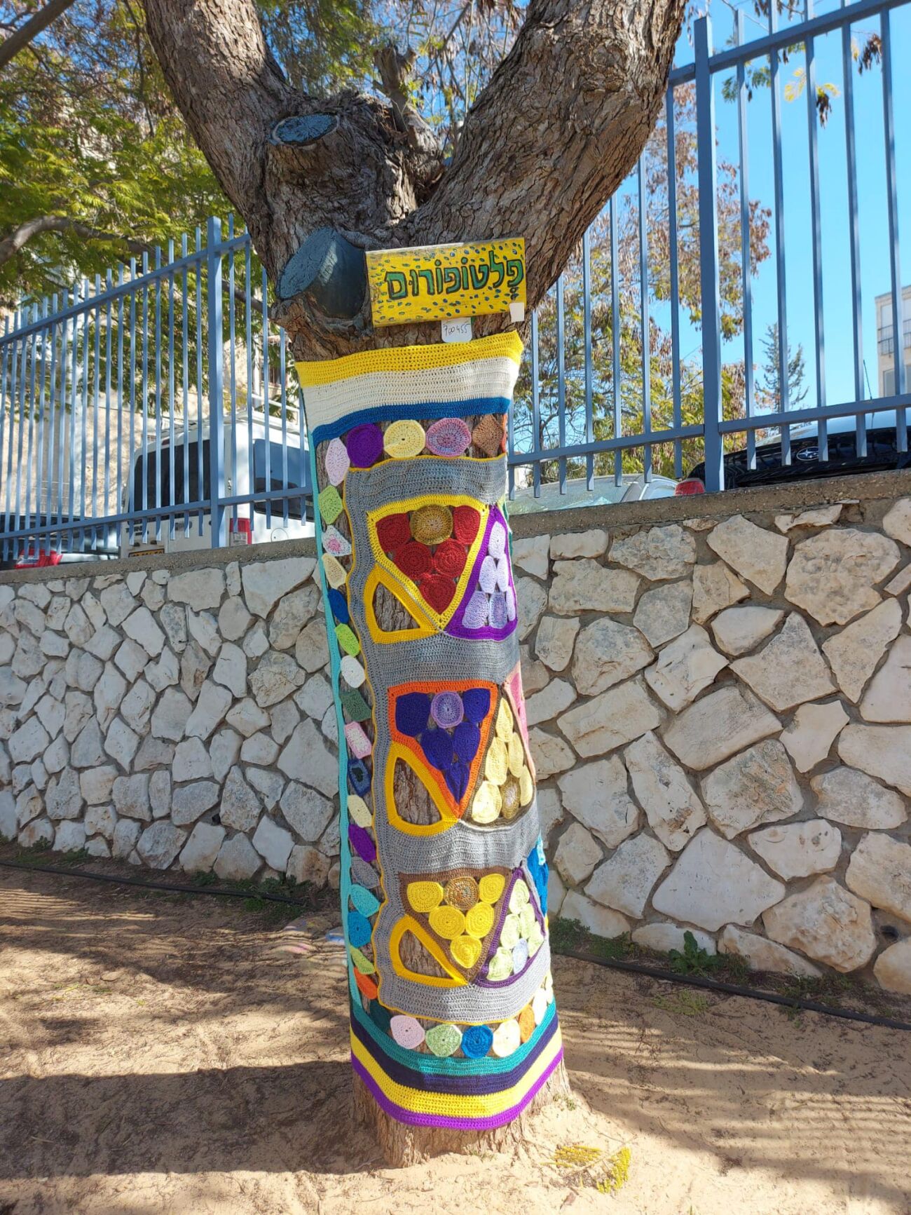 בית ספר ויצמן ברחובות חגג את סיום פרוייקט הלבשת עצי בית הספר שיזמו רותי גוהר והמורה לאמנות, מיכל לשם