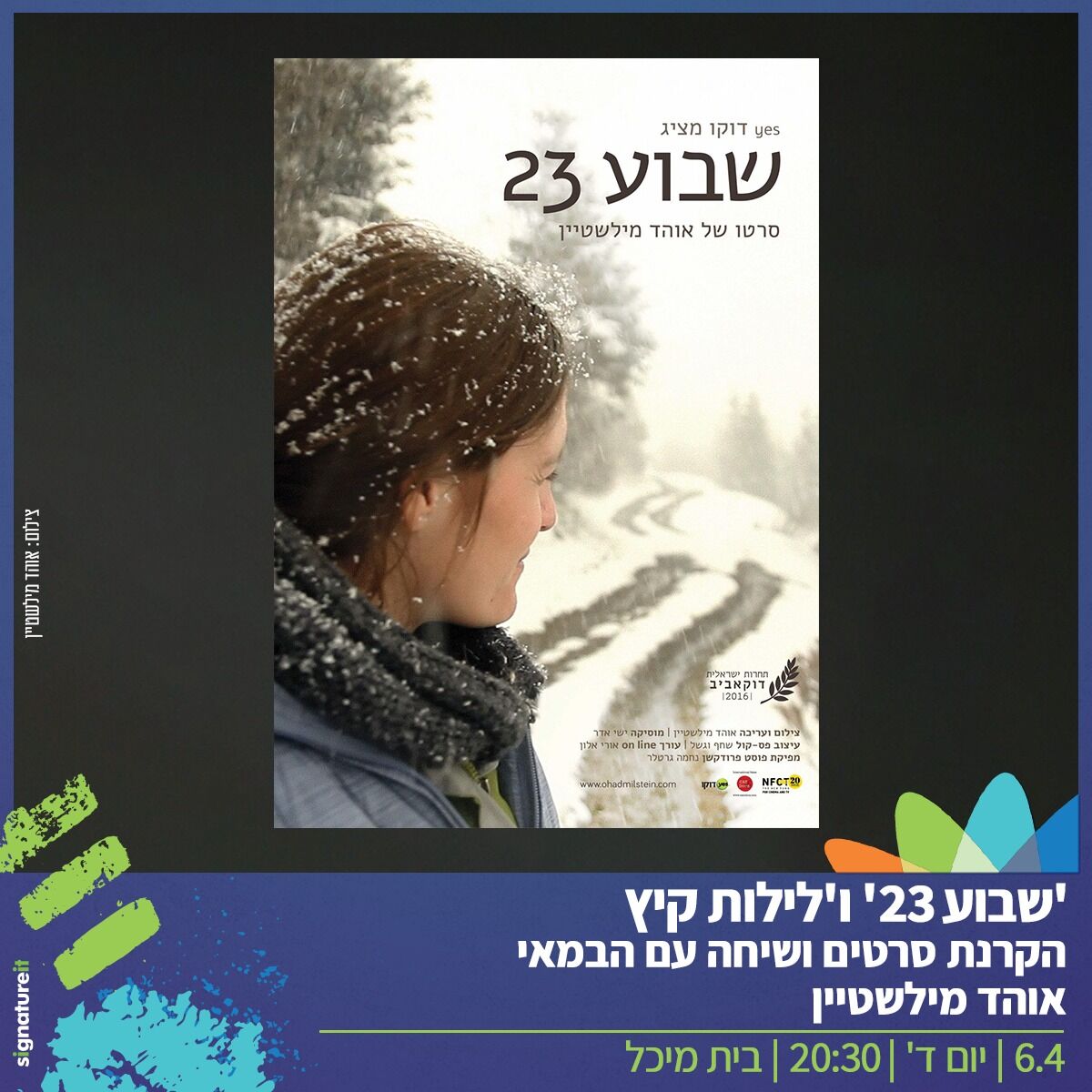 ב-'שבוע 23 ' אוהד מילשטיין מפנה את המצלמה אל תוך ביתו שלו-זוגתו רחל, בתו של בישוף שווייצרי, בבטנה תאומים זהים. בשבוע ה־ 23 להריונה, אחד העוברים מת ועל־פי הרופאים, קיימת סבירות גבוהה לפגיעה מוחית קשה. הם ממליצים להפסיק את ההיריון. כשהיא נאחזת באמונה ובאינטואיציה אימהית, היא נלחמת מול כל הסובבים אותה על זכותו של העובר החי, פגום או מושלם ככל שיהיה, לצאת לאוויר העולם.