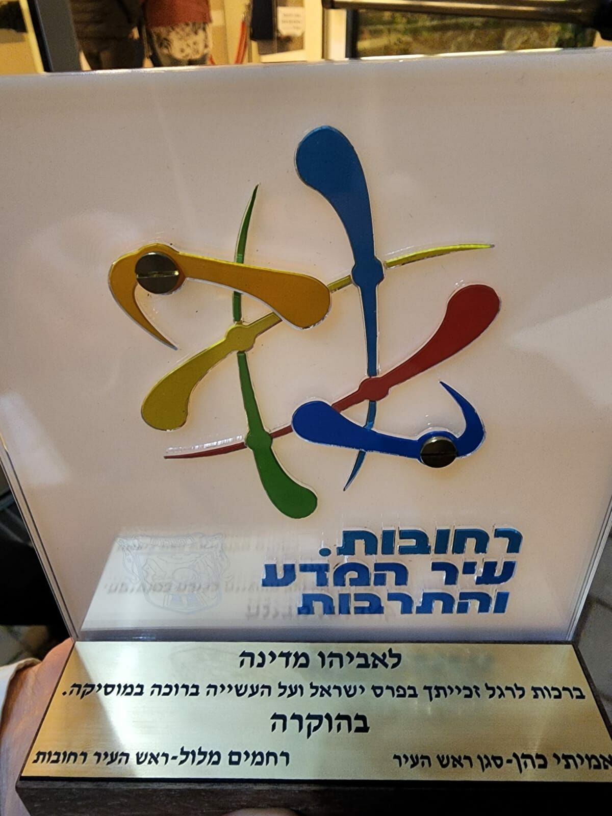 ראש העיר, רחמים מלול, העניק למדינה אות הוקרה מיוחד בשם עיריית רחובות ואמר כי ״מדובר ביוצר מהמעלה הראשונה, נעים זמירות ישראל. אנחנו שמחים לארח אותו הערב בעיר התרבות, ולהיות בין הראשונים המברכים אותו על הזכיה בפרס הגדול מכולם- פרס ישראל. אין ראוי ממנו״