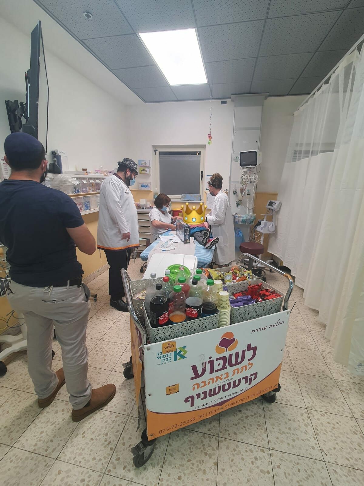 ח"כ עידית סילמן הצטרפה למתנדבי "לשבוע" ארגון החסד של קרעטשניף ברחובות לחלוקת מזון ומשחקים למאושפזי ביה"ח קפלן