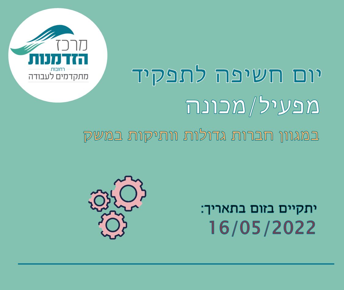 לפרטים נוספים והרשמה לפעילויות היכנסו לאתר מרכז הזדמנות