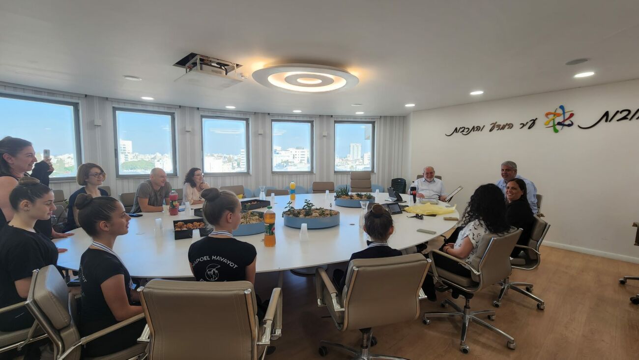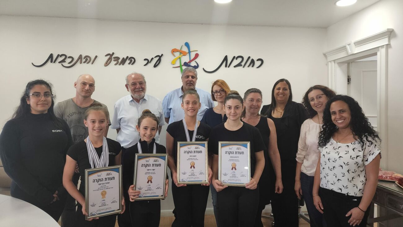 נבחרת הפועל חוויות רחובות בהתעמלות אמנותית חזרה עם המקומות הראשונים באליפות הארץ – רחמים מלול, ראש העיר וסגנו יו"ר רשת חוויות אמיתי כהן נפגשו היום עם המתעמלות בלשכת ראש העיר