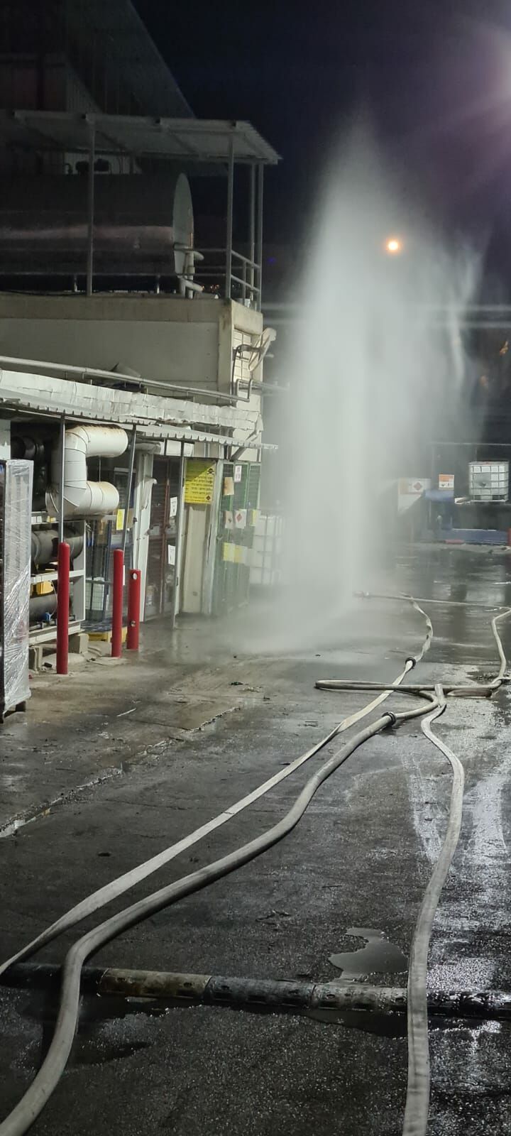 כוחות כיבוי אש שהגיעו אל המפעל פעלו באמצעות מניפות מים ע"מ לנטרל את החלקיקים ולמנוע סכנה.