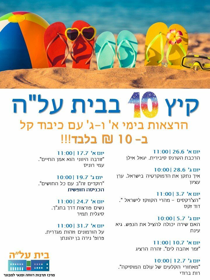 בית עלה מזמין את התושבים לשלל הרצאות ופעילויות שיתקיימו במהלך הקיץ בעלות של 10 ש"ח בלבד