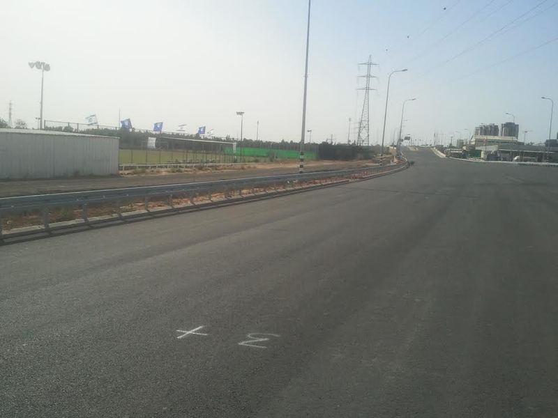 ואם הילד החליט להיות ממושמע ולחצות בצומת הרחוקה... נראה לכם שילד קטן יצעד לתוך הפרדס בחושך ובגשם כדי להגיע למגרש או יעדיף לצעוד בשולי הכביש ולהתפלל שלא יידרס? (בתמונה - מכביש 411 סללו כביש לתוך הפרדס המוביל לכיוון המגרש)