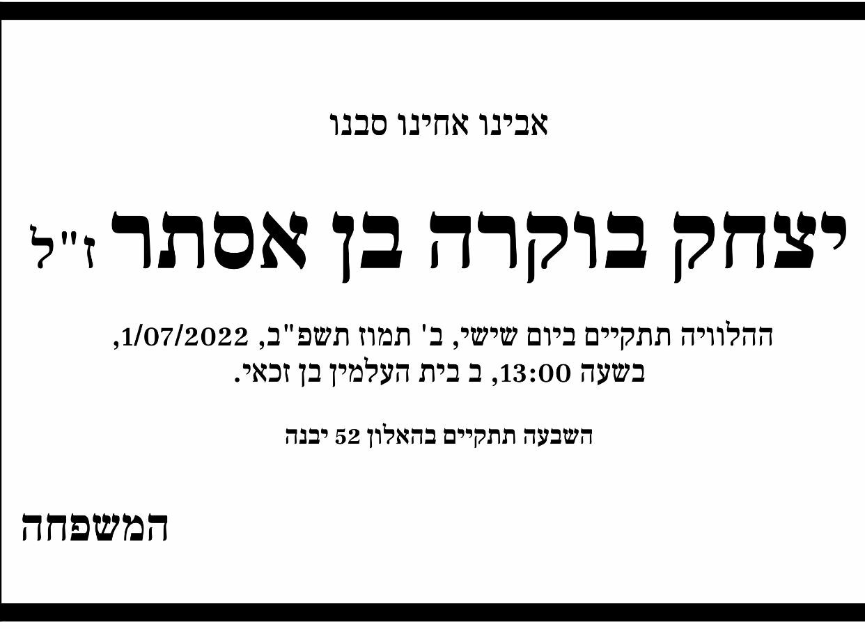 - אורחברוך דיין האמת יהי.זכרו.ברוך ת.נ.צ.ב.ה01.07.22 10:16 תגובה