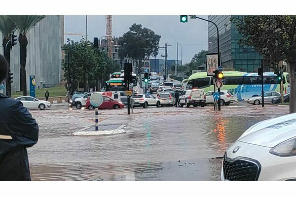 הצפות ברחובות! כביש העוקף באזור פארק המדע הוצף, הכביש חסום, אין גישה למתחם הבדיקות באתר הפרדסנות