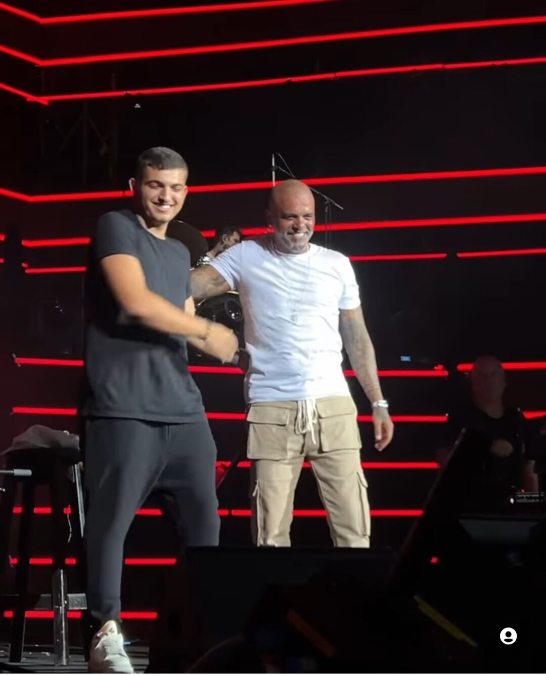 סרטון -ליאם גולן סוף סוף מסכים לשיר יחד עם אביו, אייל גולן על הבמה בקיסריה