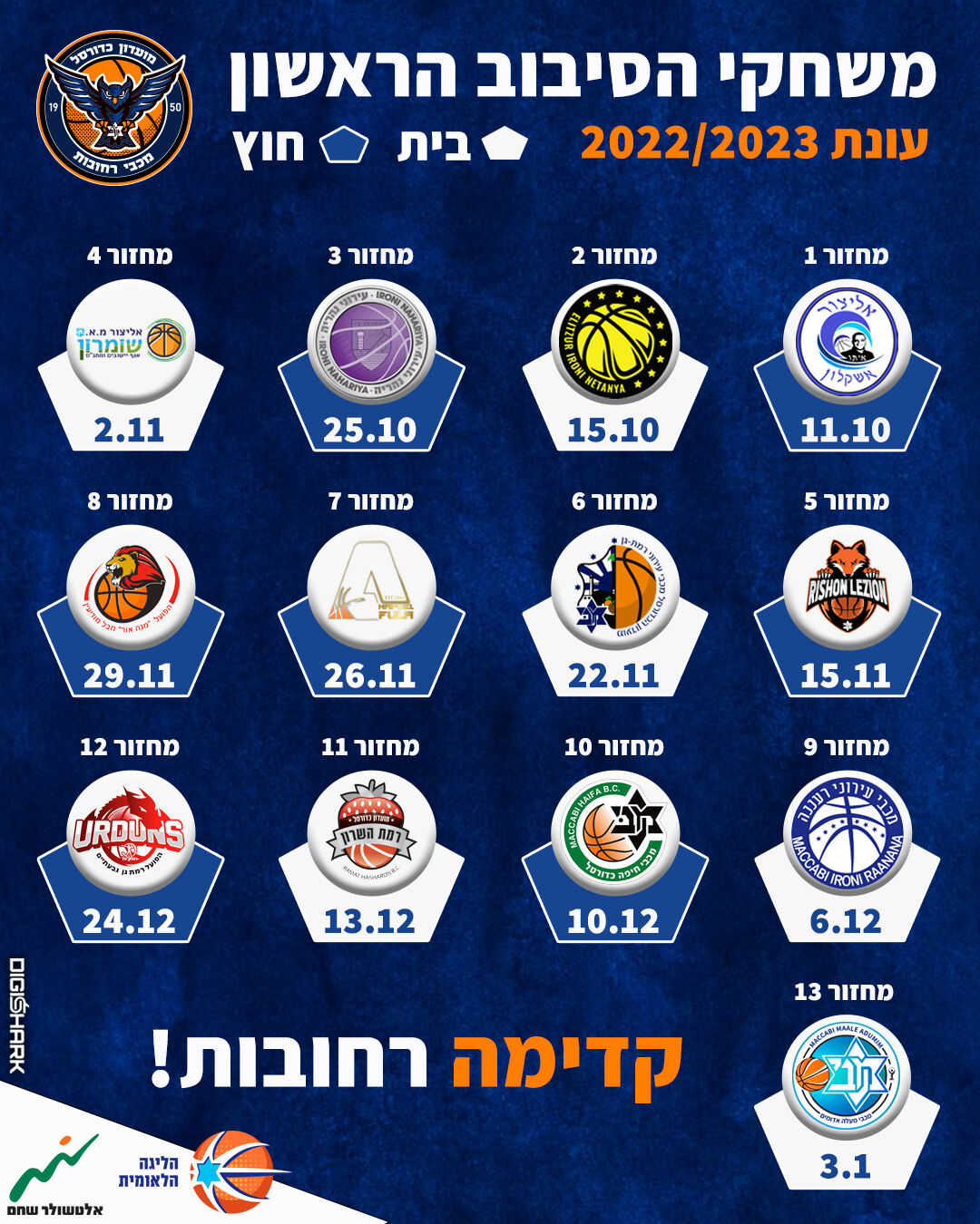 ביום שלישי 11.10 תפתח מכבי רחובות בכדורסל את עונת 2022/23 בליגה הלאומית במשחק חוץ נגד אשקלון