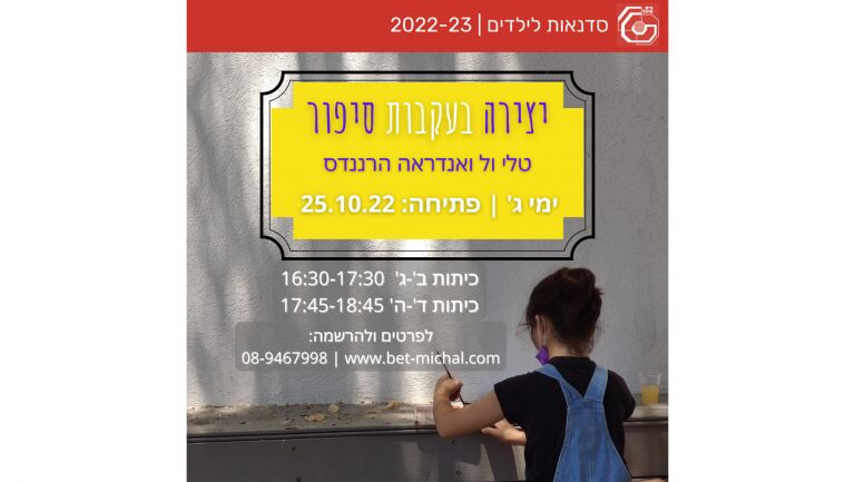 הילדים מוזמנים לצאת להרפתקת יצירה מיוחדת במינה, בהשראת ספרים וסיפורים נפלאים בהתאם לעונות השנה, נספר סיפורים מיוחדים וניצור בהשראתם מגוון יצירות מחומרים וטכניקות מגוונות. הסדנה מתאימה לילדים שאוהבים יצירה, הרוצים לבטא את עצמם דרך החומר.