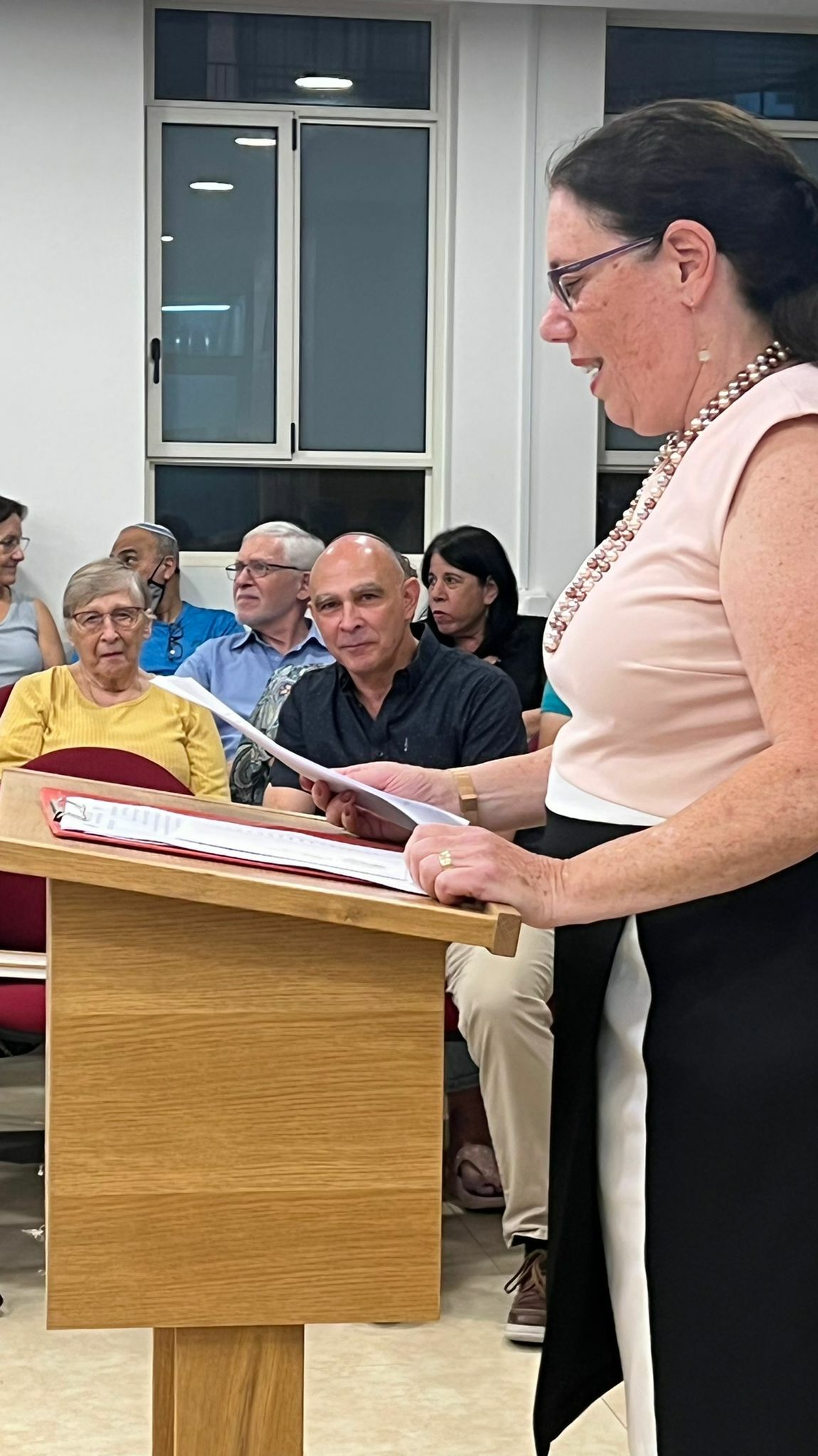 לינדה אביטן, יו״ר קהילת ״עדת שלום עמנואל״ בירכה את הרב וציינה: