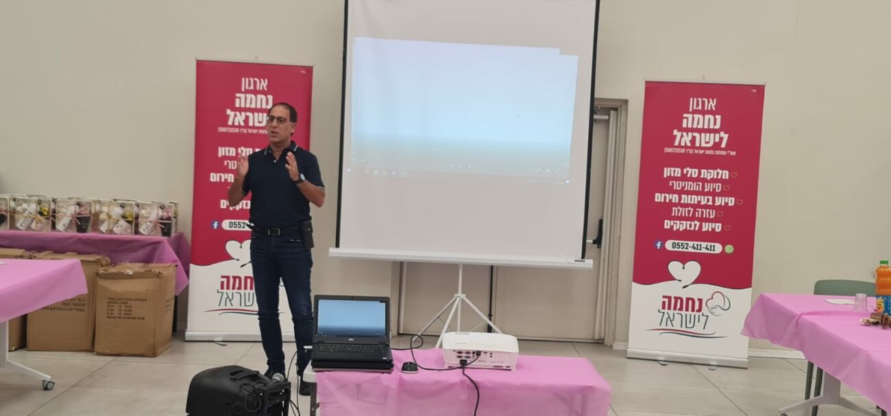 אמיר צברי יו"ר ארגון נחמה לישראל שהוביל את הערב נשא דברים ומסר: "הערב אנחנו נפגשים על מנת להוקיר תודה, לכם המתנדבים אשר בשמש ובגשם מדיי שבוע מגיעים לכאן ומסייעים באריזת סלי המזון ובחלוקתם למשפחות מתמודדות בעיר. אני מבקש למסור את הערכתי ותודתי הגדולה שכן בלעדיכם מפעל החסד הזה לא יכול היה להתקיים.