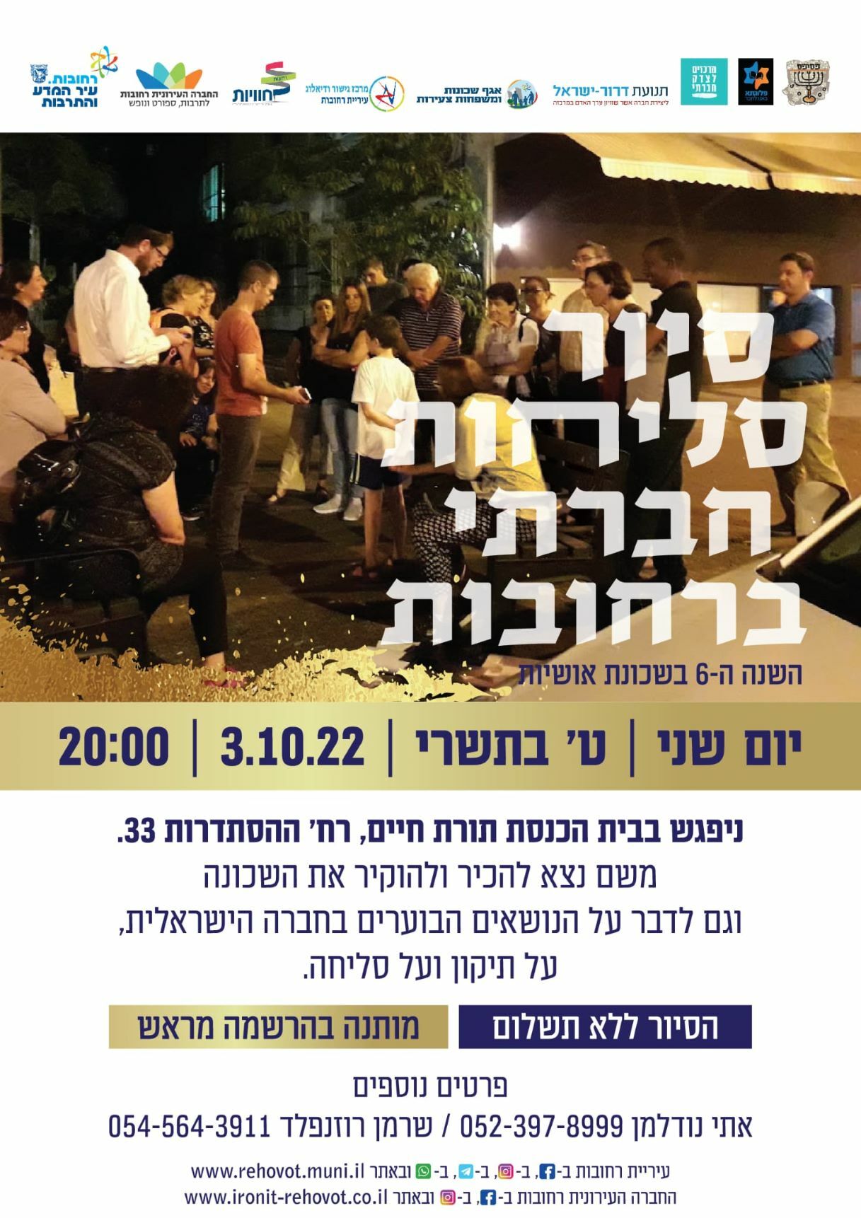 ביום שני 3.10 ייצא סיור סליחות חברתי מבית הכנסת תורת חיים בשכונת אושיות רחובות- לינק להרשמה מצ"ב בכתבה