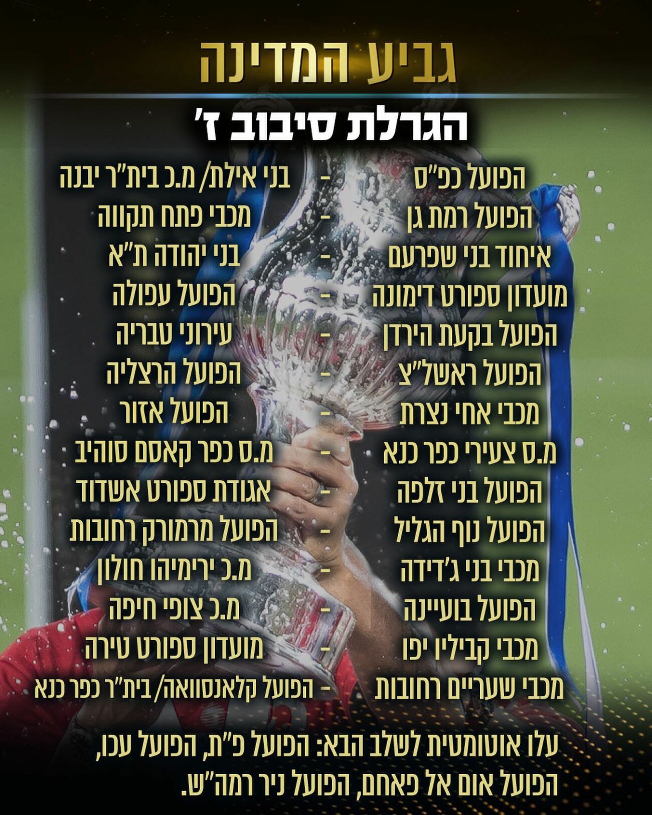 משחקי גביע המדינה! בסיבוב ז' הפועל מרמורק תפגוש את קבוצת נוף הגליל ומכבי שעריים תתמודד מול המנצחת במשחק שבין הפועל קלאנסוואה לבית"ר כפר קנא