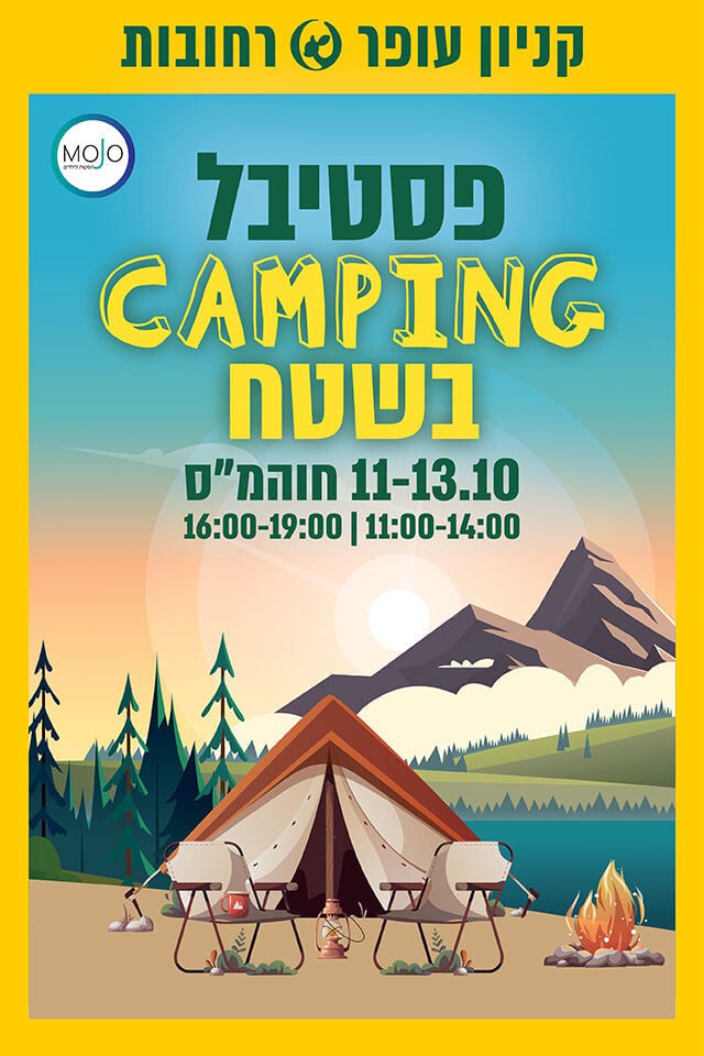 בחול המועד הזה, יוצאים להרפתקה בשטח! מתחם מחנאות, הפעלות אינטראקטיביות, מתחם יצירות וכמובן מתחם משחקים! פסטיבל קמפינג לכל המשפחה מתחם יצירות DIY – בו יכינו הילדים מגוון אביזרים לטיולי שטח – תרמיל , עשישית ומצפן מתחם משחקי שטח – בו הילדים יהנו ממגוון משחקי עץ – בול פגיעה, משחק תותחים, קוביות עץ, חץ וקש , משחקי מבוך ועוד.. מתחם מחנאות עם פעילות אינטרקטיבית 17:00-19:00 בה ילמדו הילדים כיצד לשרוד בתנאי שטח