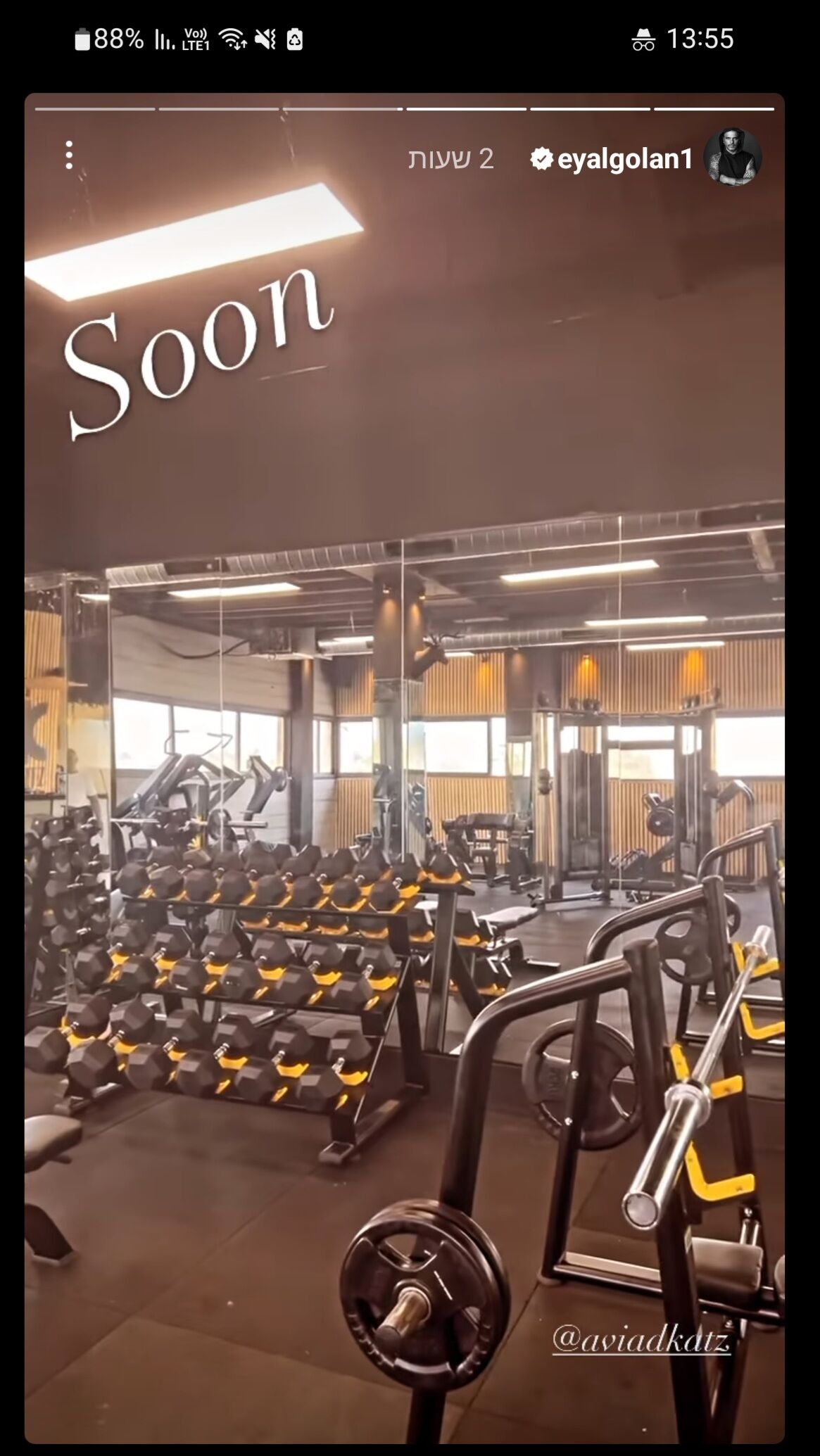 אייל גולן פתח את הבוקר בביקור מיוחד אצל חברו אביעד כץ שעתיד להרחיב את עסקיו ולפתוח מתחם כושר חדש על שמו